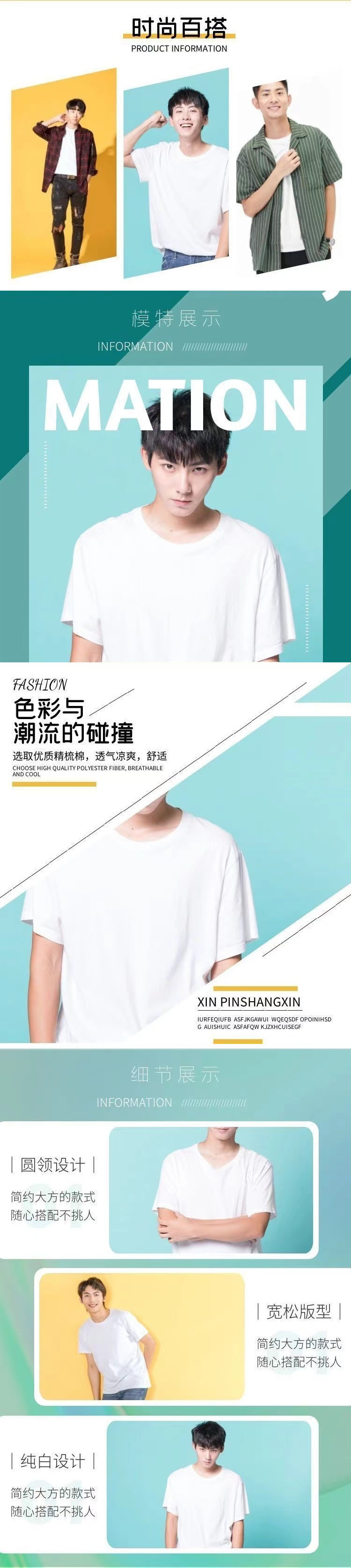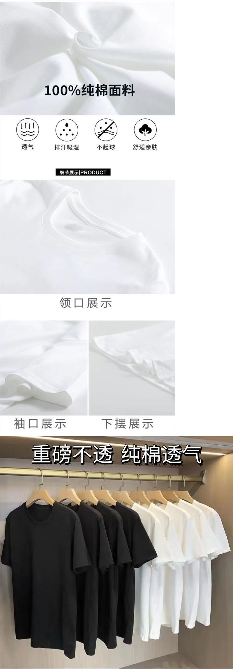 綿100%の白いTシャツ、男女兼用、無地半袖カジュアルインナー、夏用ボトムス半袖シャツ