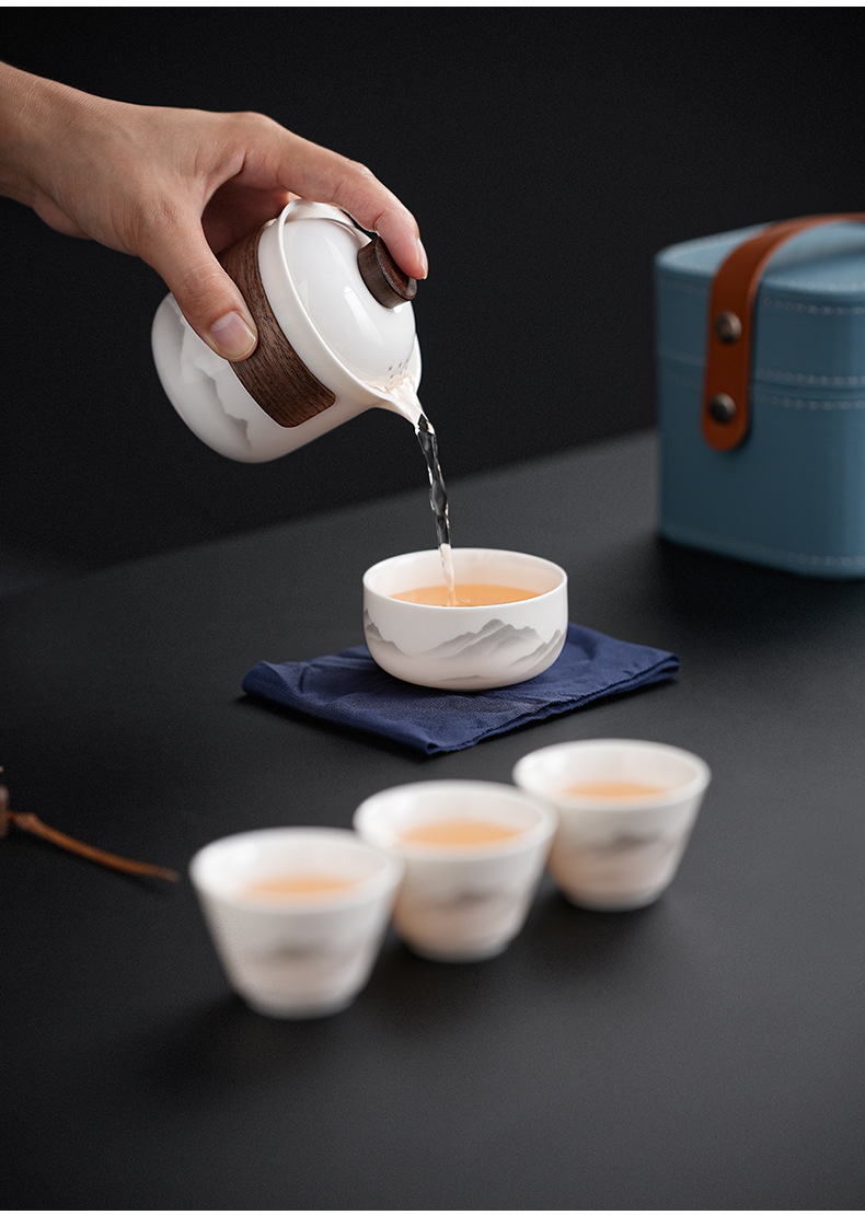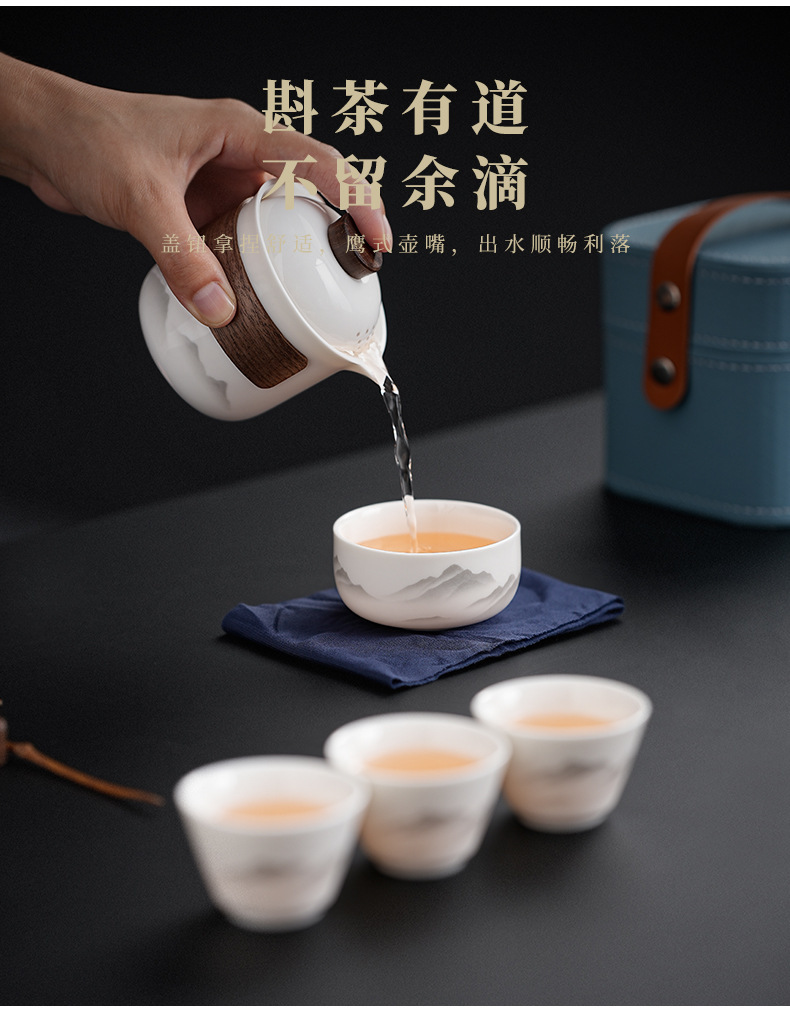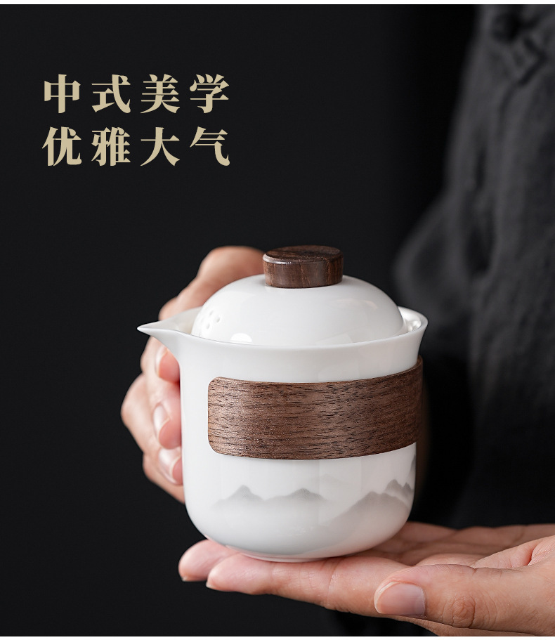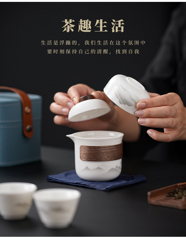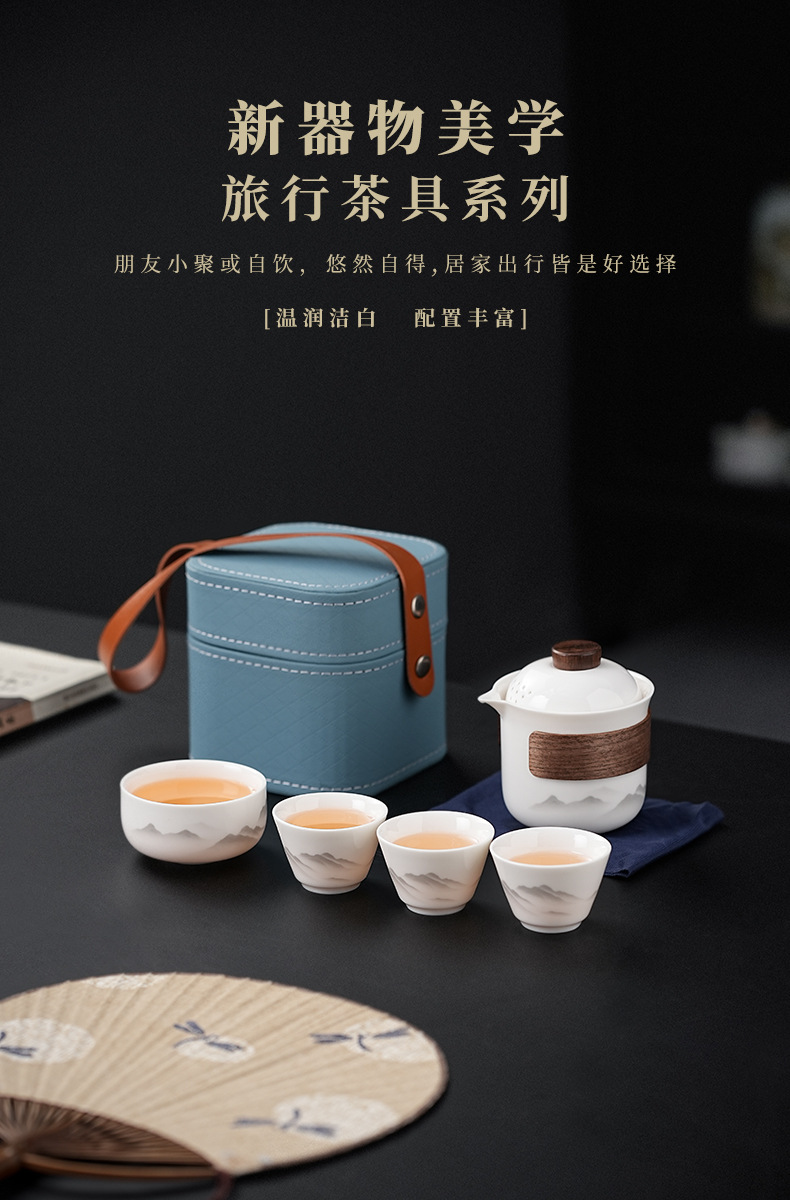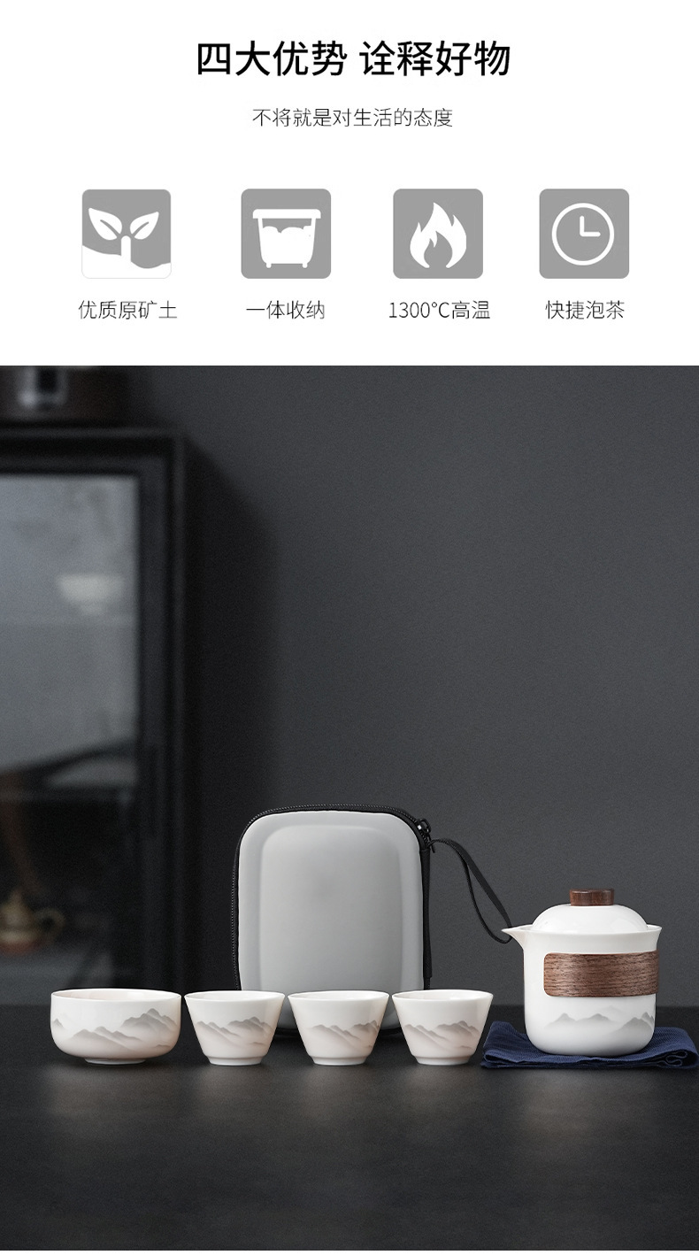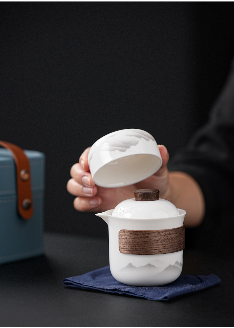 羊脂玉旅行茶具便携式快客杯户外功夫泡茶壶商务伴手礼品印logo