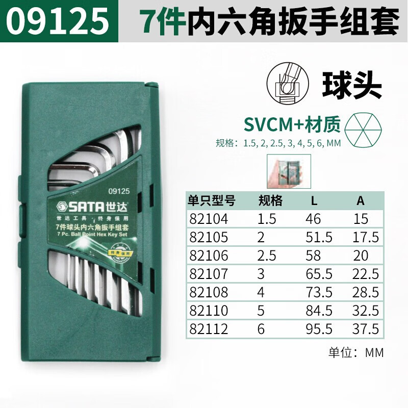 世達 (SATA) ツール09125 7個ボールヘッド内六角レンチセット09125 7個ボールヘッド内