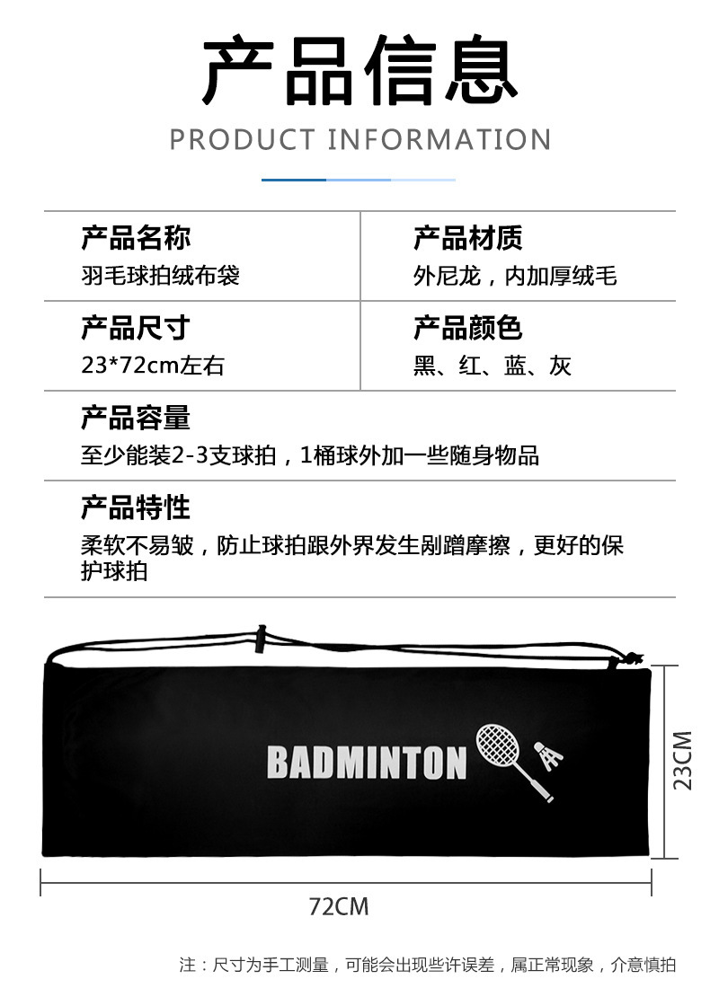 バドミントンラケットバッグバドミントンラケットバッグ肥厚フランネルバッグショルダーバッグラケット収納保護カバー軽量巾着バッグ