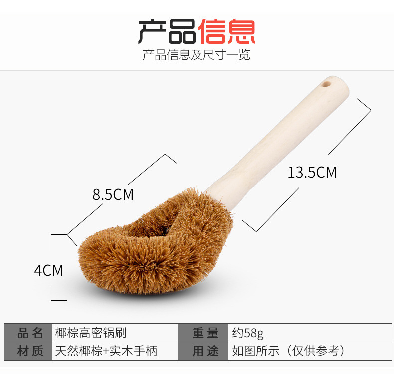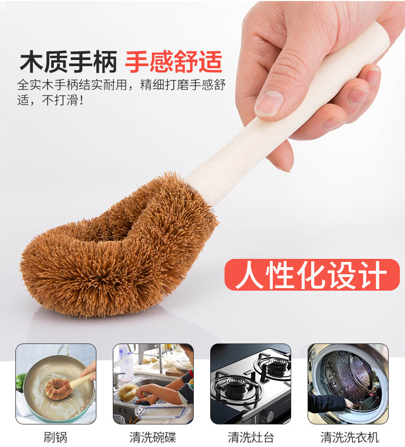 天然椰棕洗锅刷子长柄木柄不伤锅不粘油棕毛刷锅擦锅厨房洗锅神器