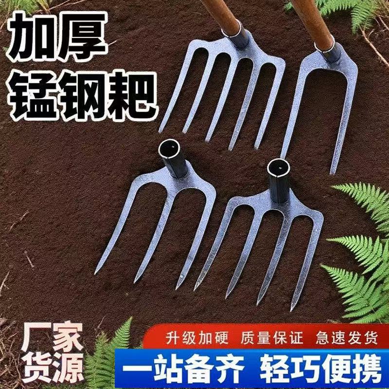マンガン鋼ソリッドスチールレーキ、多歯レーキ、大型三歯レーキ、芋・ピーナッツの除草、家庭用グラップリングフック、土の反転