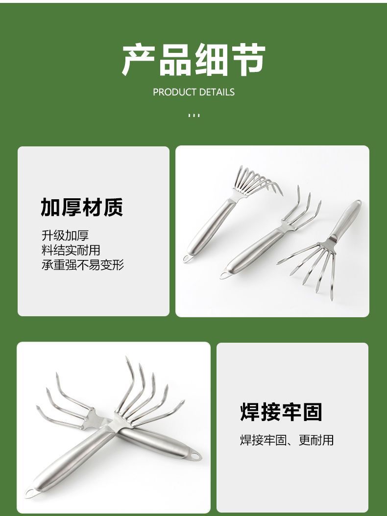 松土小耙子加厚不锈钢园艺除草专用神器翻土种花工具花盆松土赶海