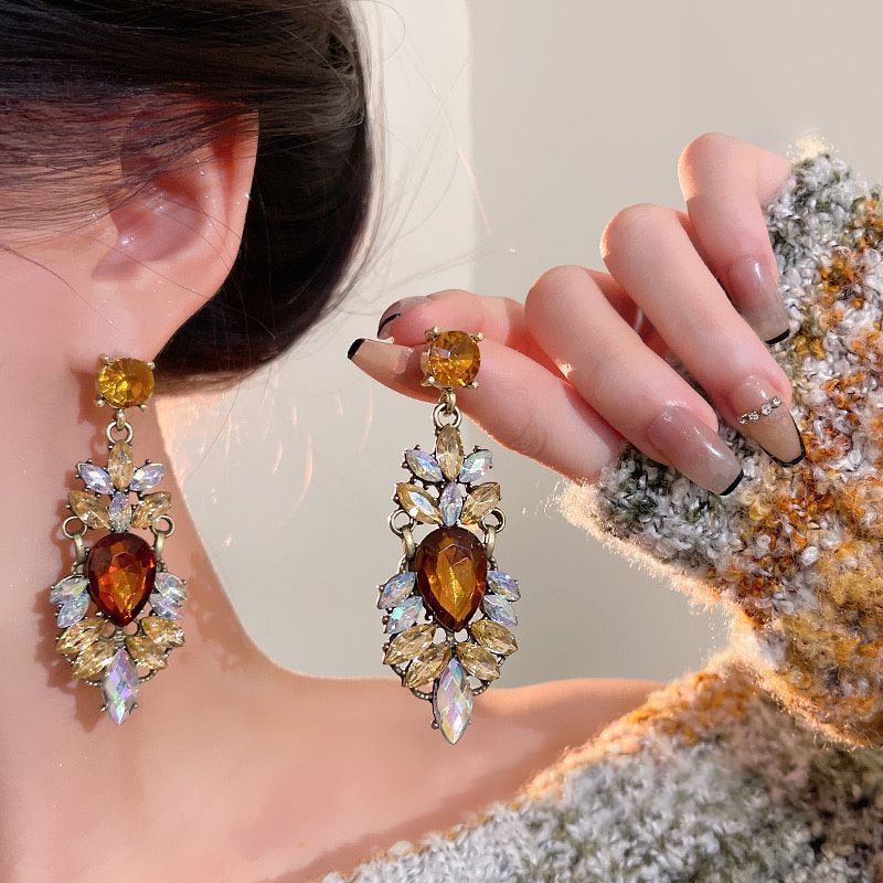 欧美复古超闪水滴耳环时尚夸张大气重工耳钉跨境时尚高级感耳饰女