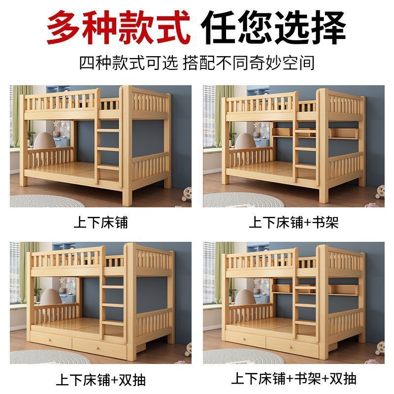 二段ベッド、全無垢材ハイ&ローベッド、大人用多機能小型子供用二段ベッド、木製ベッド、二段ベッド
