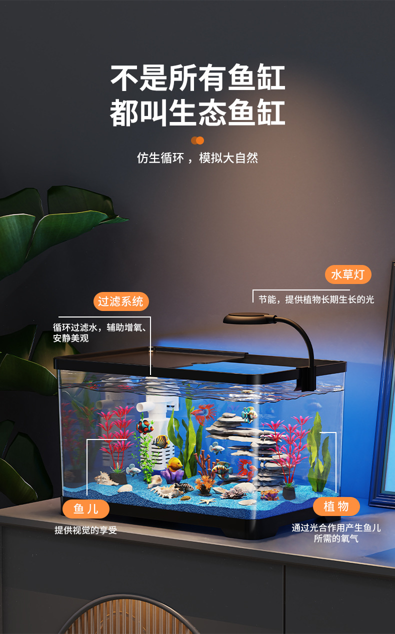 2025新款桌面鱼缸小型造景全套生态透明家用客厅鱼缸底滤宠物用品