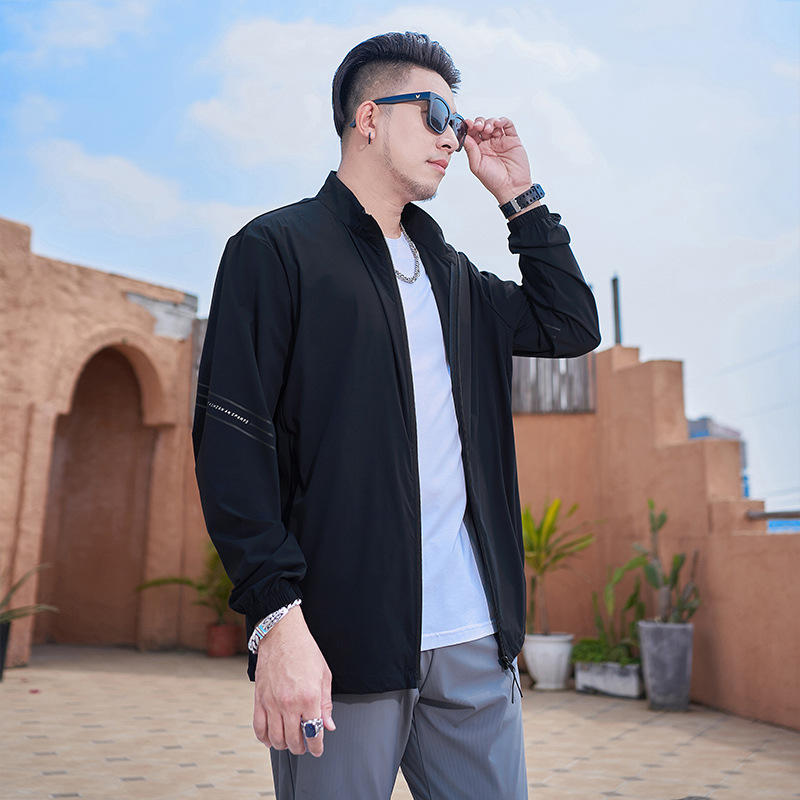 88117 | 大きいサイズの男性服夏の新しい皮膚服upf50 + 通気性通勤ゆるい日焼け止め服薄いコート男