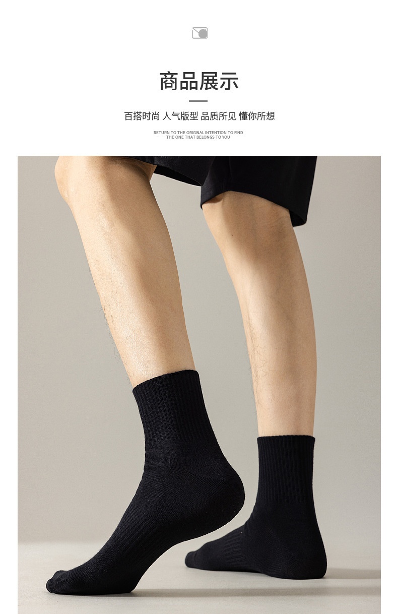 新疆長絨綿靴下白黒灰純色抗菌ウエスト通気防臭ビジネスカジュアル純綿長筒靴下