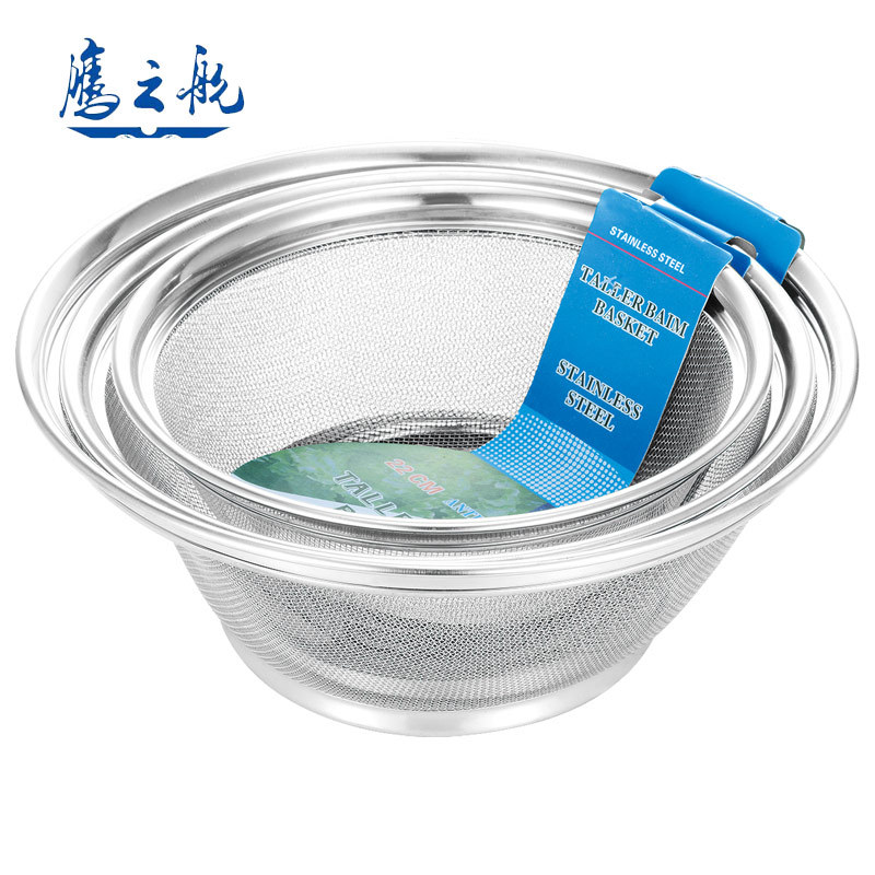 鷹の航ステンレスの高い辺の水たまりの網のかごの密な穴は多く米の客間の台所で果物と野菜の水たまりを洗ってふるいを蒸します。