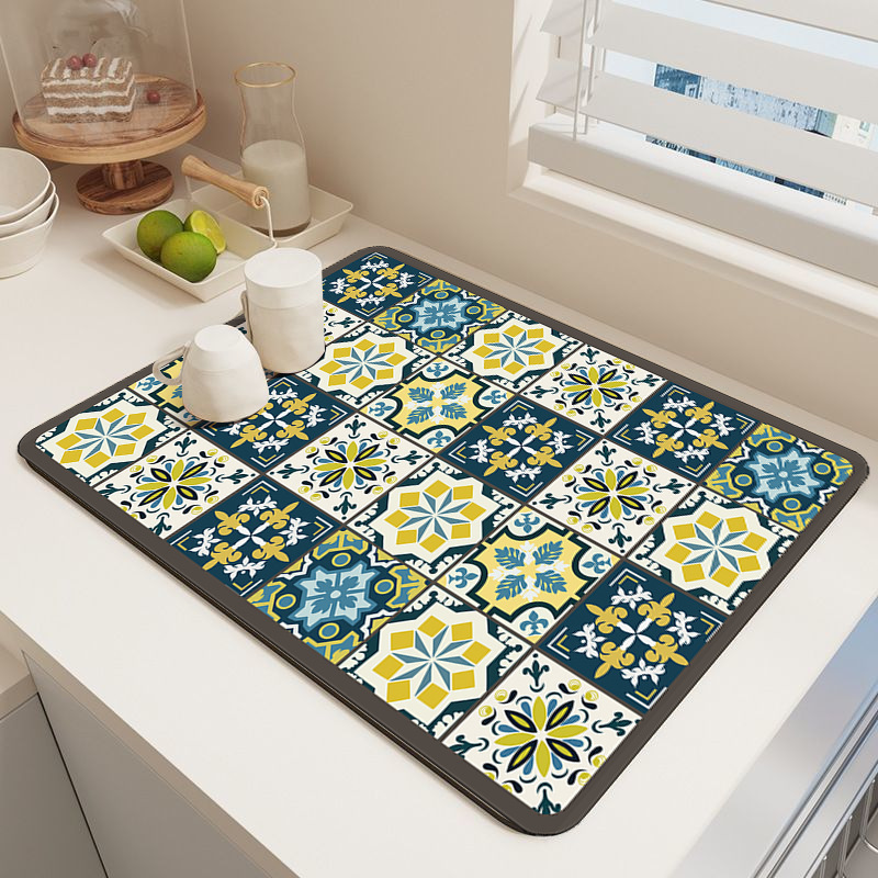 台所のテーブルの上で水を切って柔らかい珪藻泥のテーブルの上で水を吸い込むマットの滑り止めの無洗濯のテーブルのマットの断熱マットの卸売り