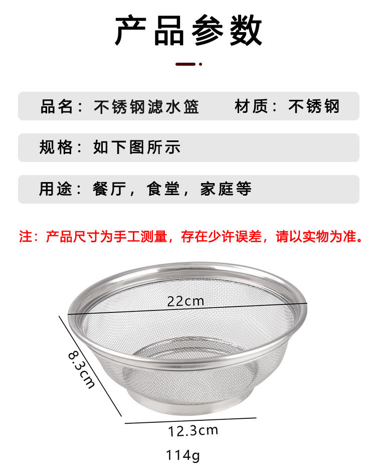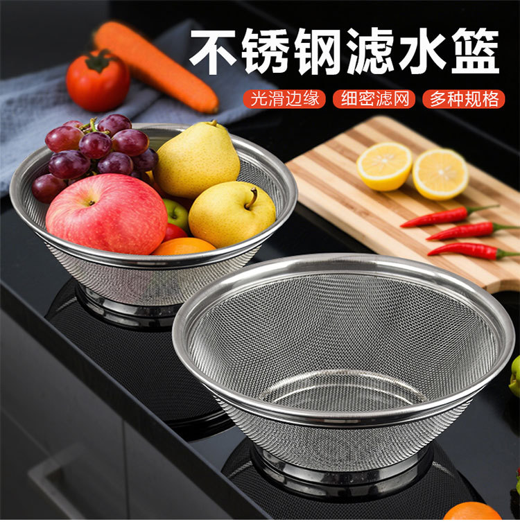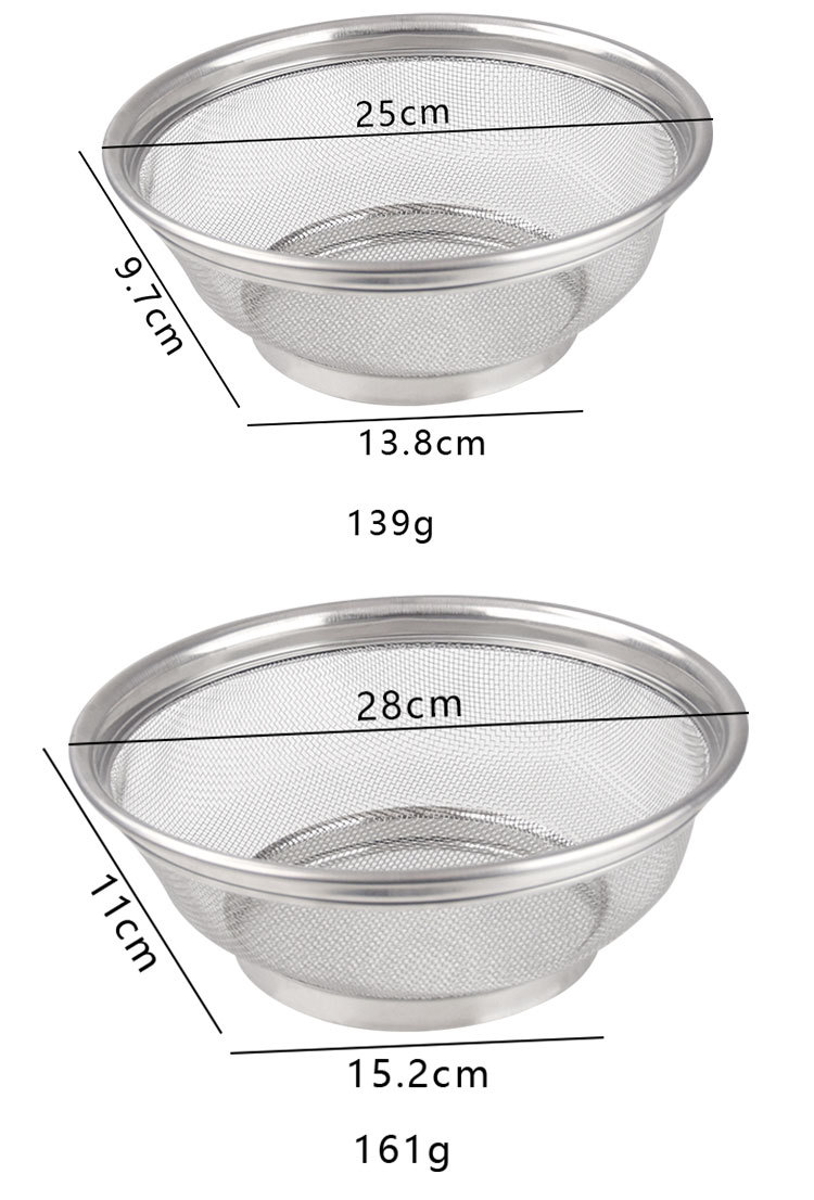 22、25、28cm ステンレス鋼の排水バスケット野菜洗濯バスケット家庭用米洗いふるいキッチン野菜洗濯バスケットフルーツバスケット卸売