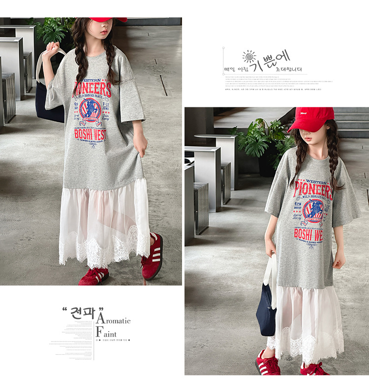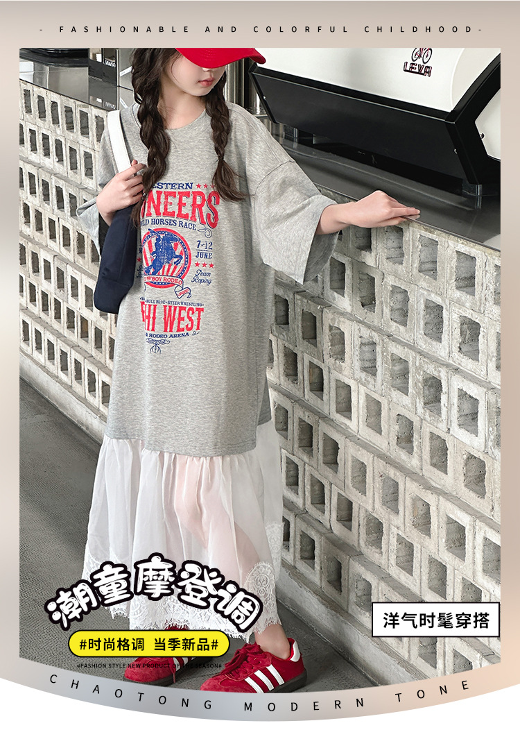 女の子ドレス夏 2025 新しい子供のファッショナブルなサマードレス女の子のための純粋な綿半袖スプライシングスカート
