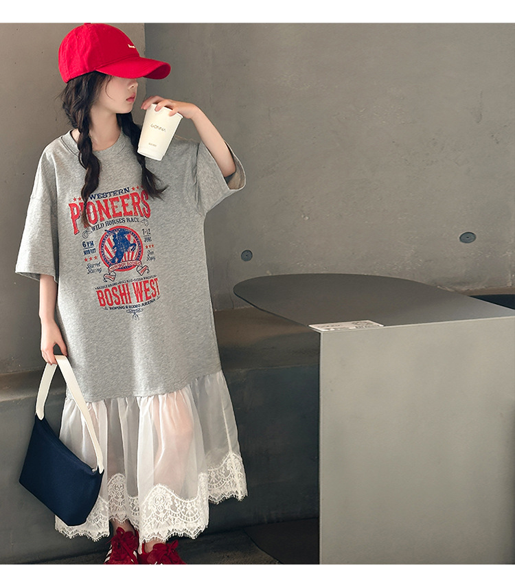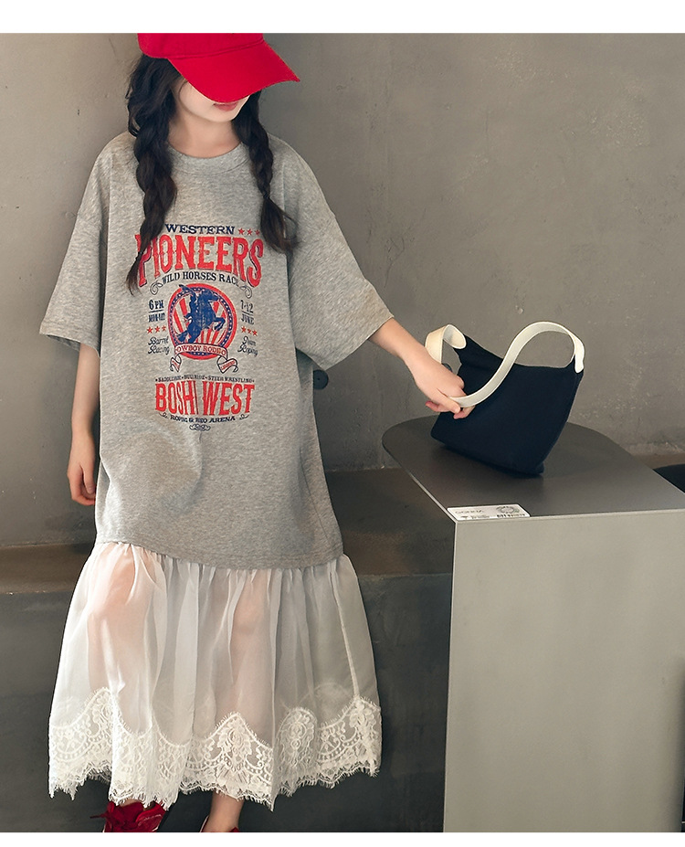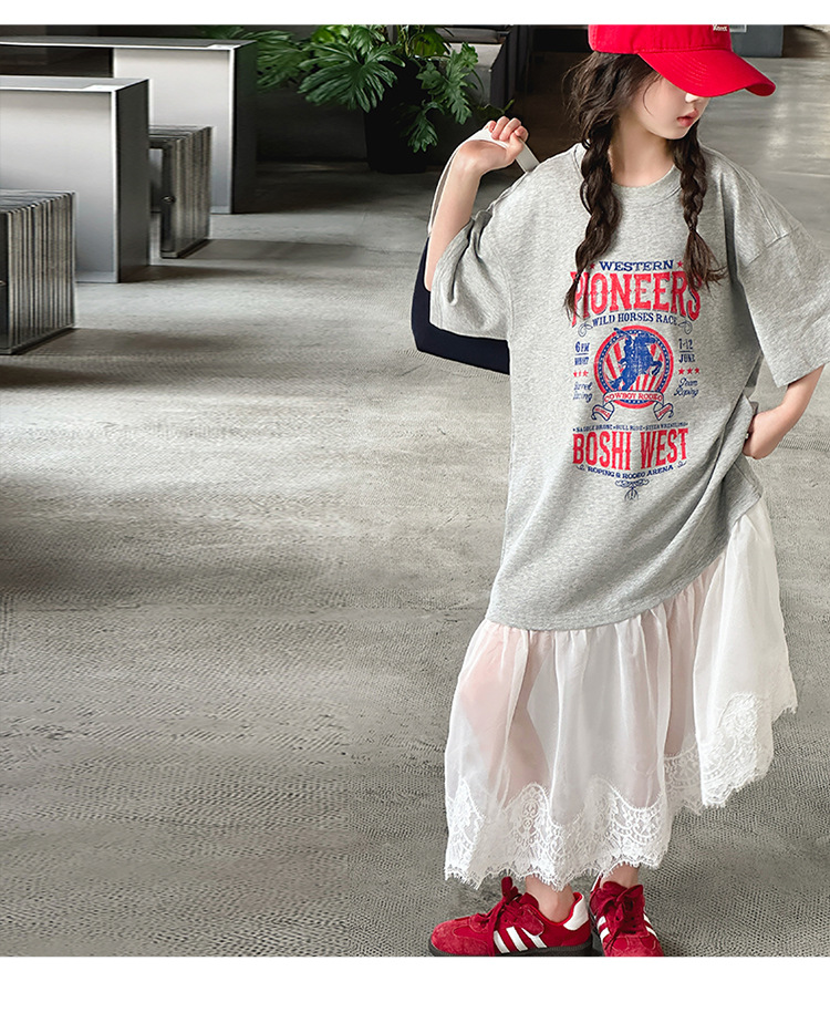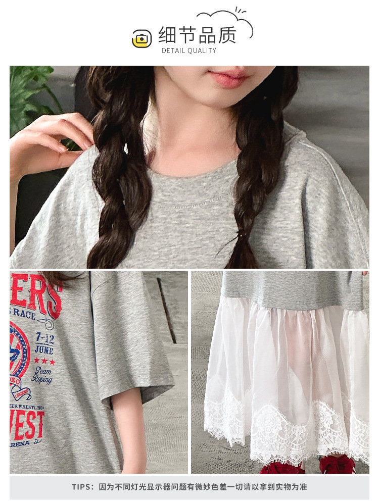 女の子半袖tシャツ夏2025新型子供のファッション夏服大童純綿レースの底付き上着