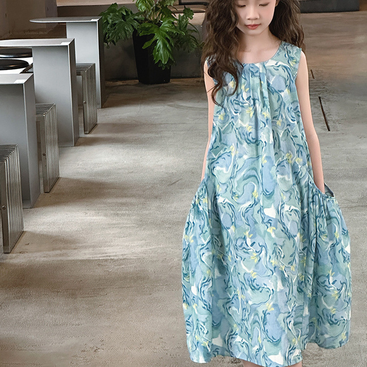 女童夏季连衣裙2025新款儿童无袖裙子女大童公主裙夏装洋气碎花裙