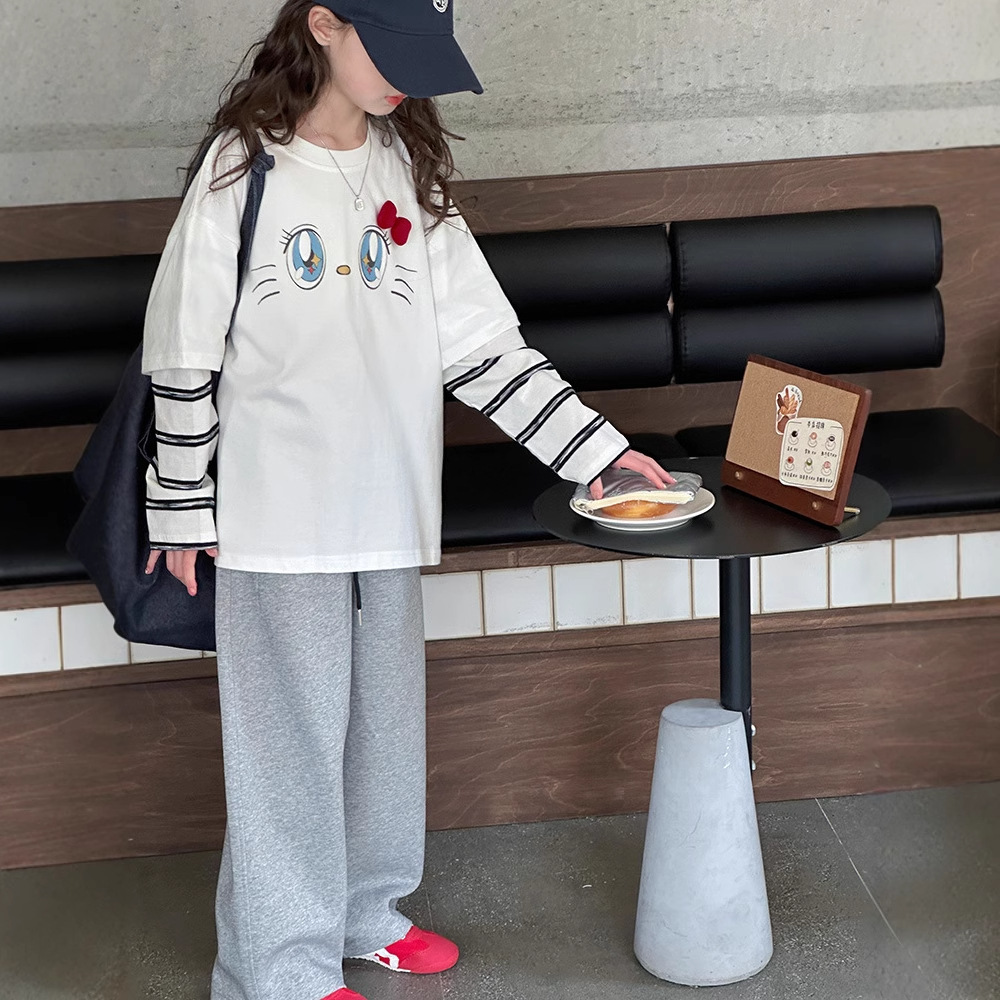 女の子用スウェットシャツ 春秋 2025年新作 子供用春服 女の子用 大きな子供用 スポーツカジュアル 丸首 長袖トップス 韓国風