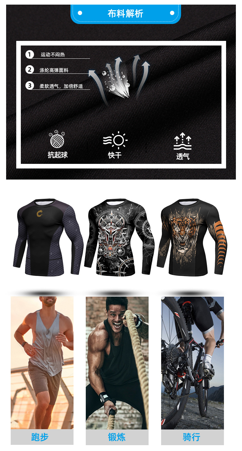 男性プリント長袖通気運動速乾レオタードフィットネス運動ボトムシャツ秋冬レジャーランニングtシャツ