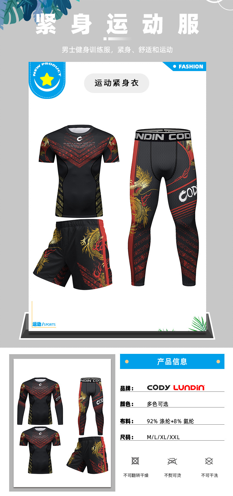クロスボーダー新しいスポーツタイトな4ピースランニングスポーツフィットネスウェアパーソナライズされた3Dデジタルプリント紳士服