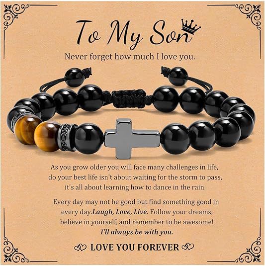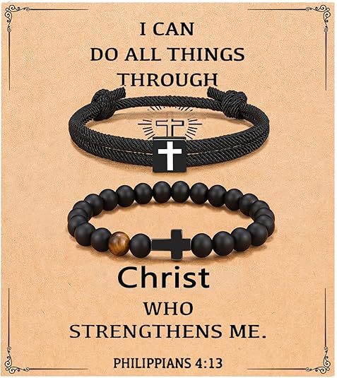 クロスボーダーブラックフロストタイガーアイストーンブレスレットクロスペンダントギフトビーズブレスレットブラックダイヤモンドサークルクロスホリデーブレスレット