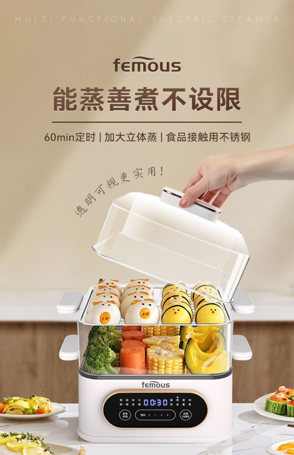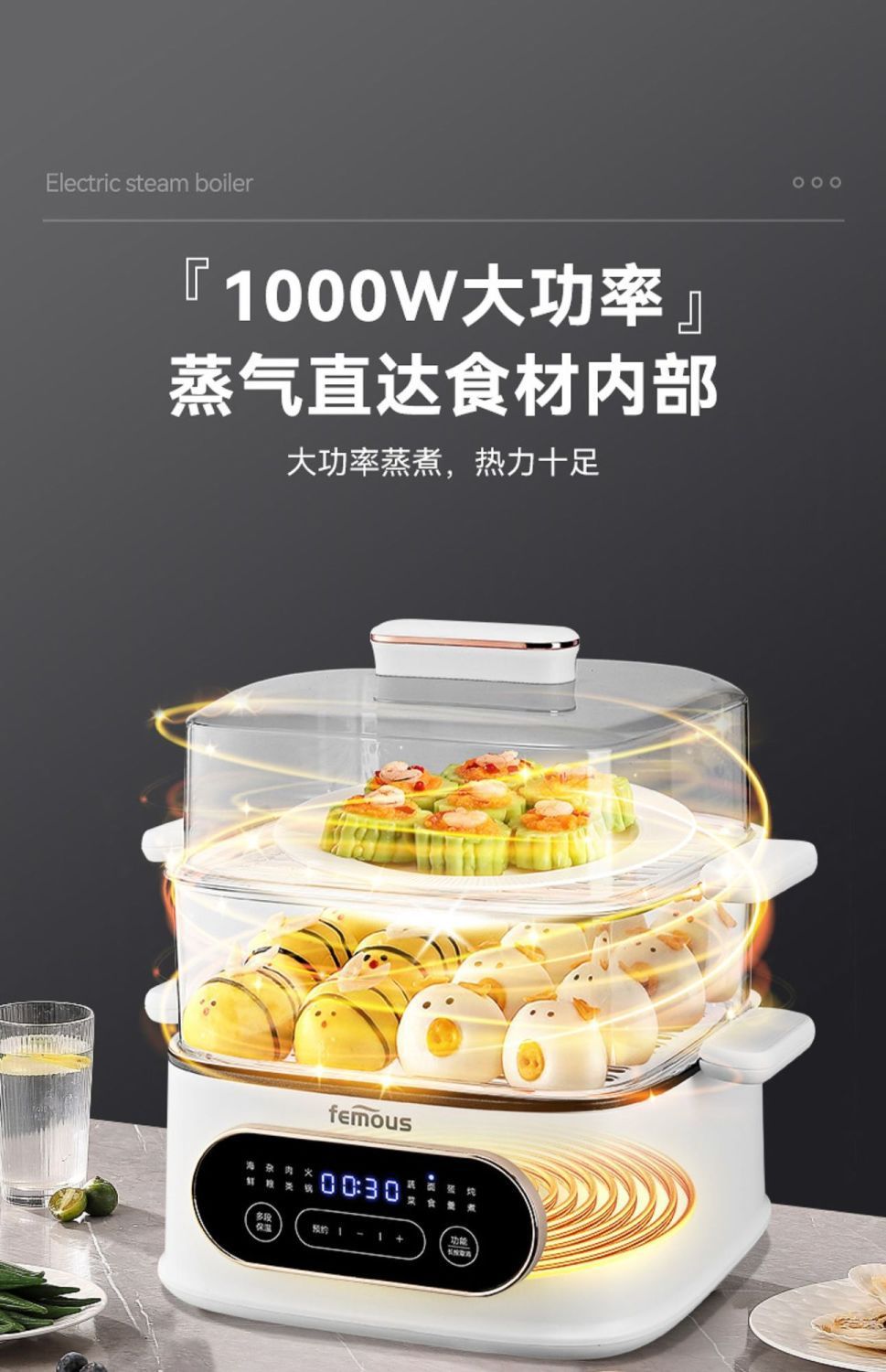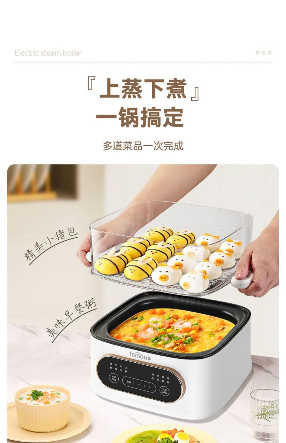 英国の有名な全自動インテリジェント電気蒸し器、予約可能な電気鍋、多機能朝食機、蒸し器