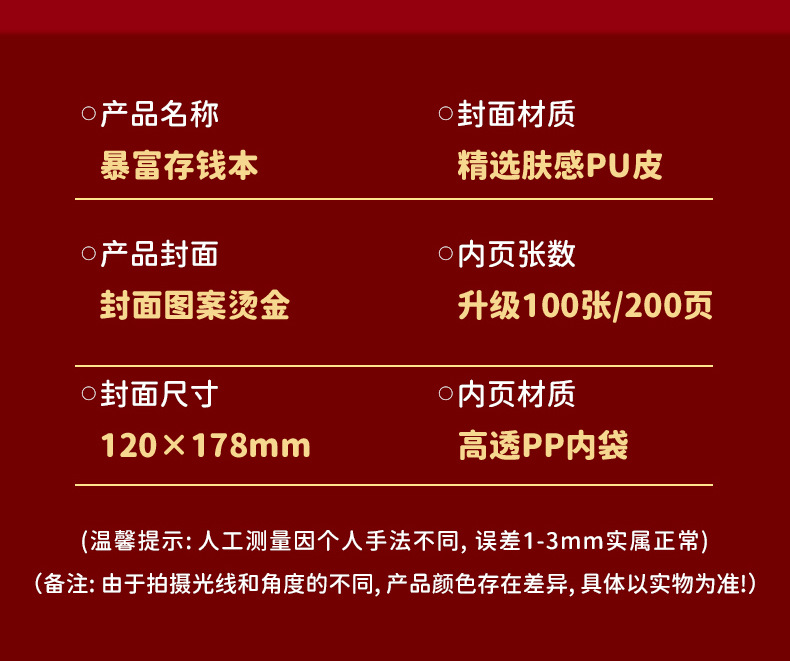 2025暴富現金貯金本は現金収納袋の大容量預金ネットの赤い資産管理帳に入れることができる