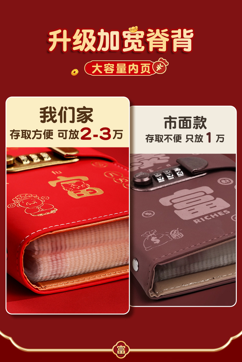 暴富现金存钱本密码锁存钱夹钱册存钱本记账本钱包大容量现金收纳