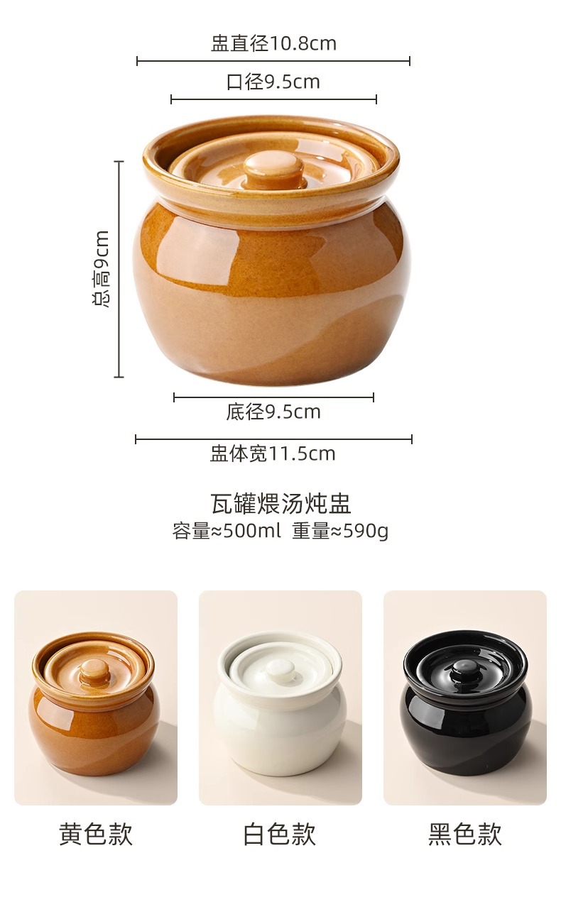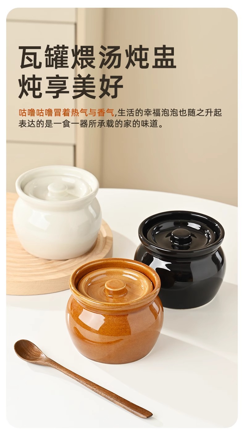 瓦罐煨汤炖盅家用商用隔水炖一人蒸蛋带盖炖罐沙县小吃陶瓷煲汤罐