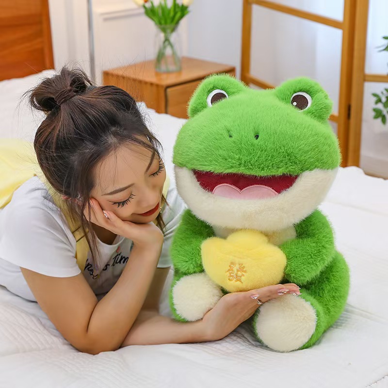 かわいい金のカエルのぬいぐるみ会社の活動は贈り物の子供のカエルの人形の家庭の置物の卸売りを投げます。