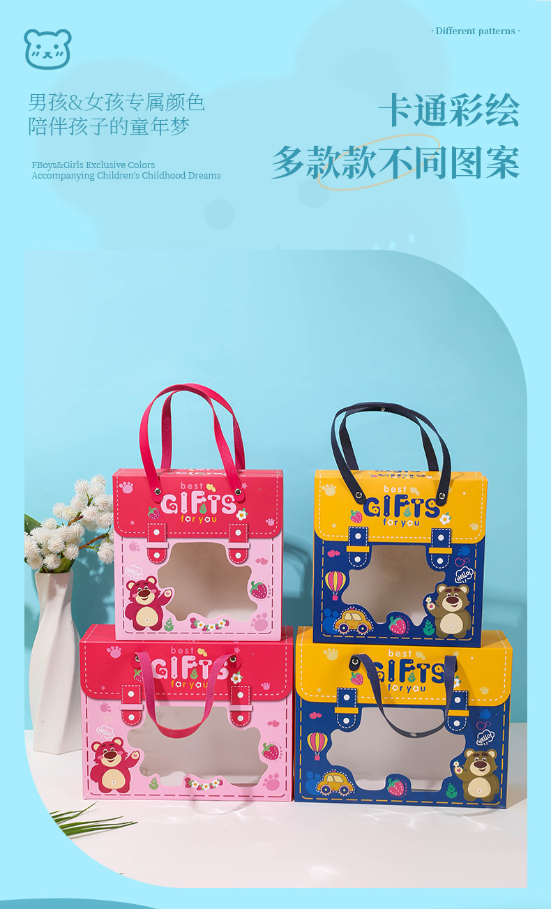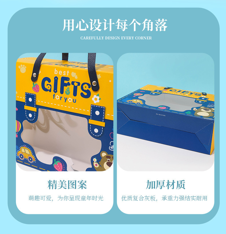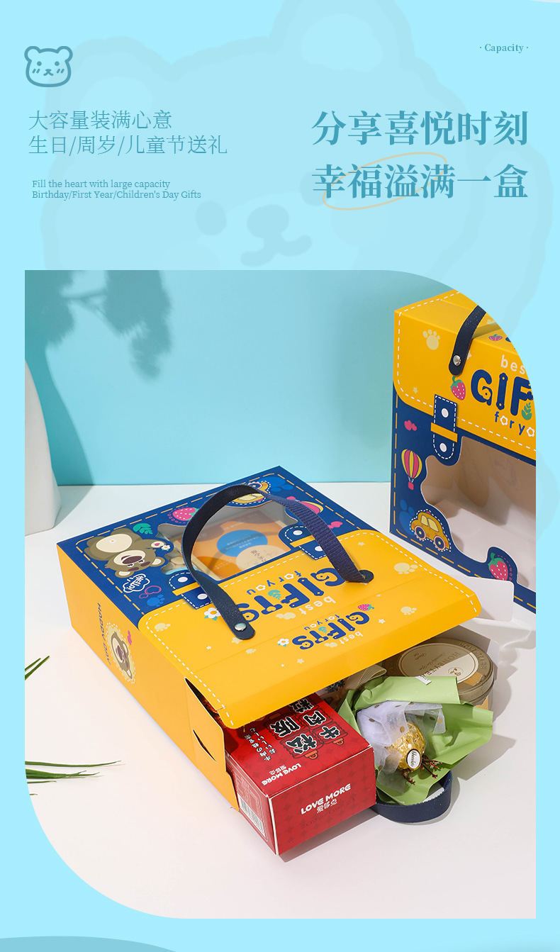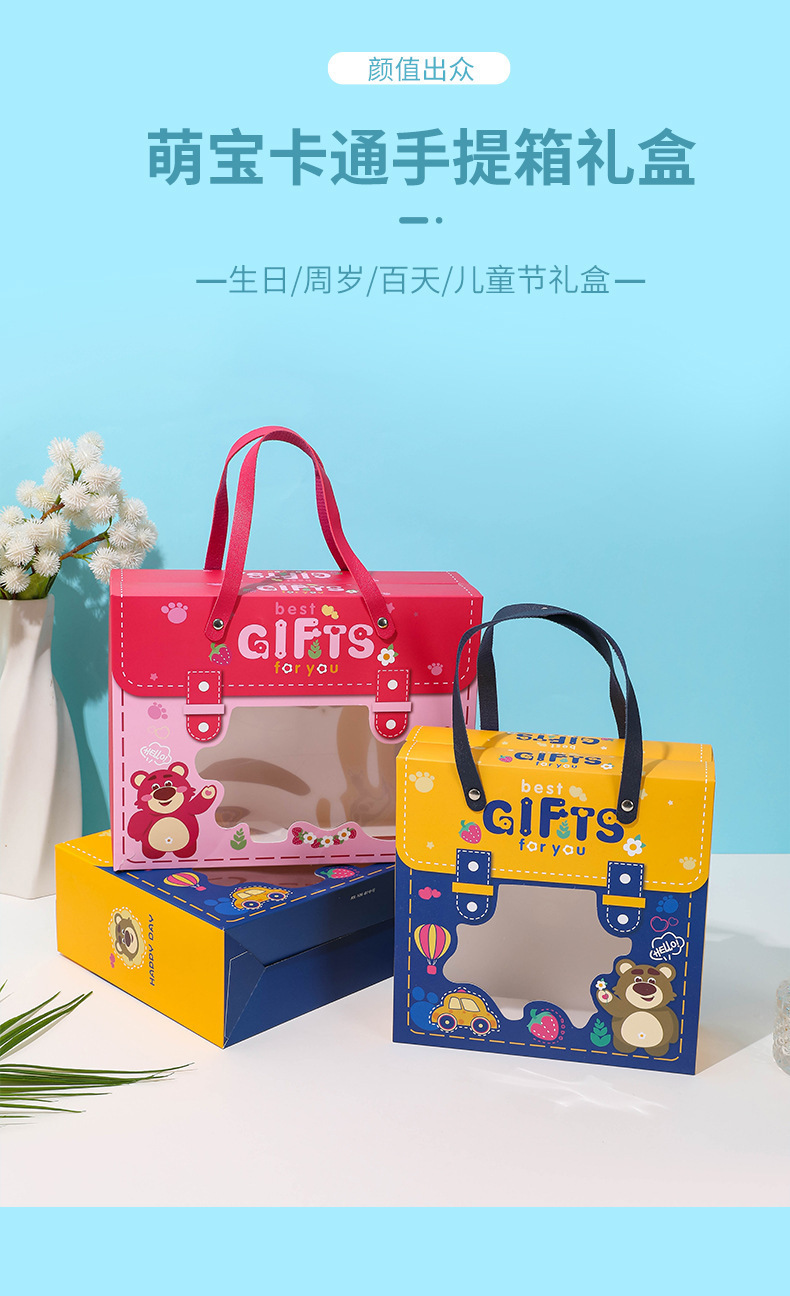新款宝宝满月回礼盒 卡通图案抽屉盒 手提六一儿童节礼物盒生日