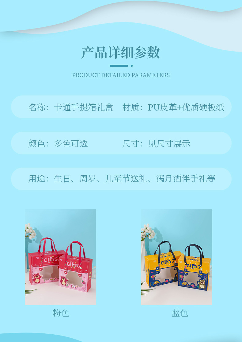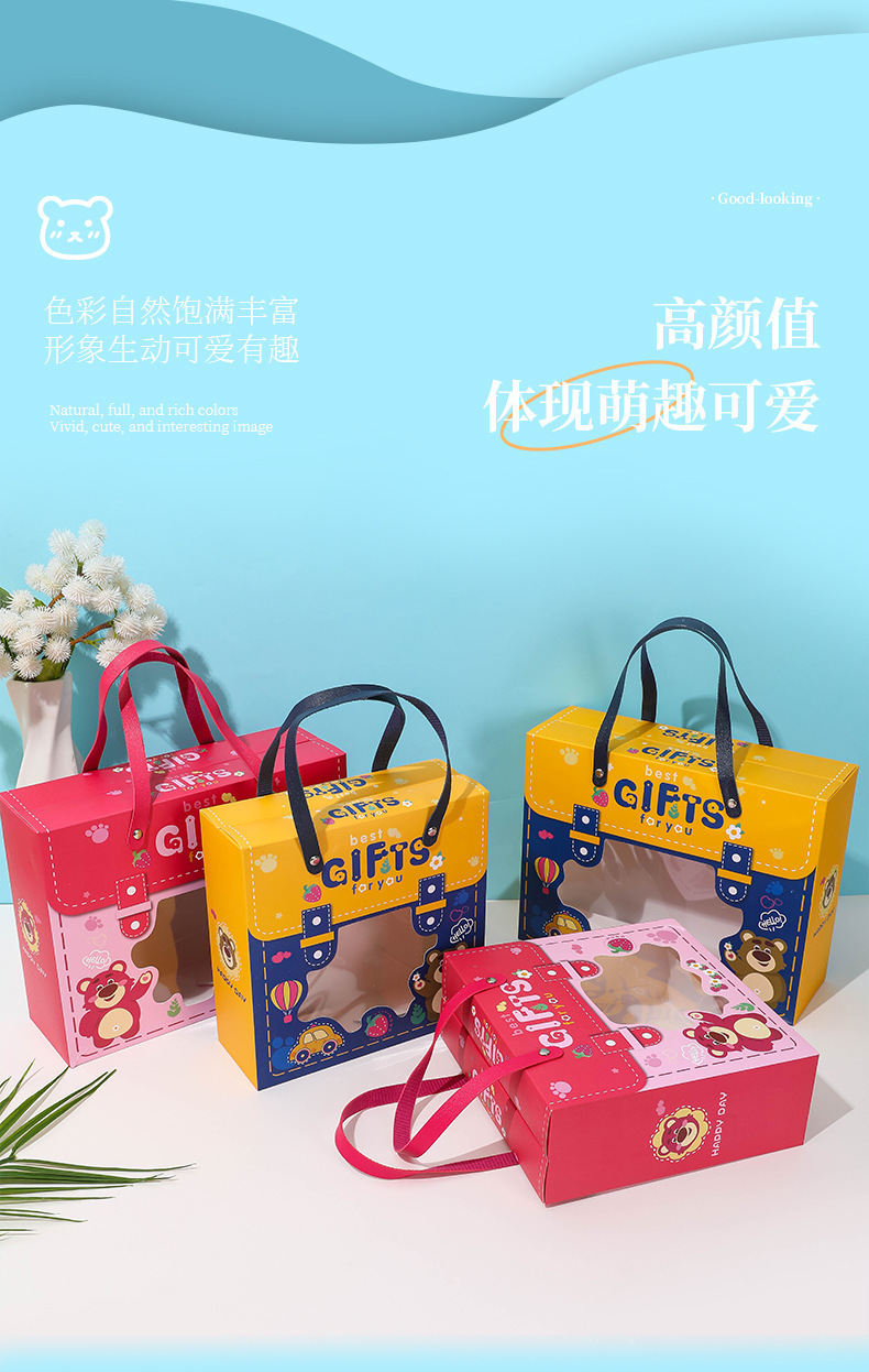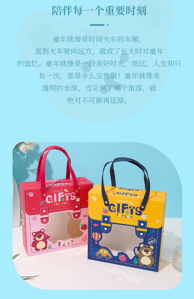 新款宝宝满月回礼盒 卡通图案抽屉盒 手提六一儿童节礼物盒生日