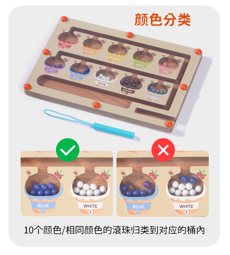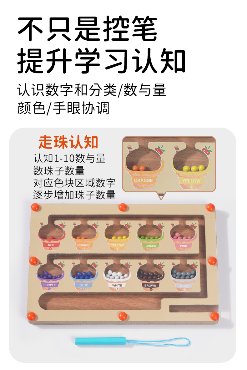 跨境儿童计数运算颜色分类磁吸走珠迷宫磁力走位握笔早教益智玩具