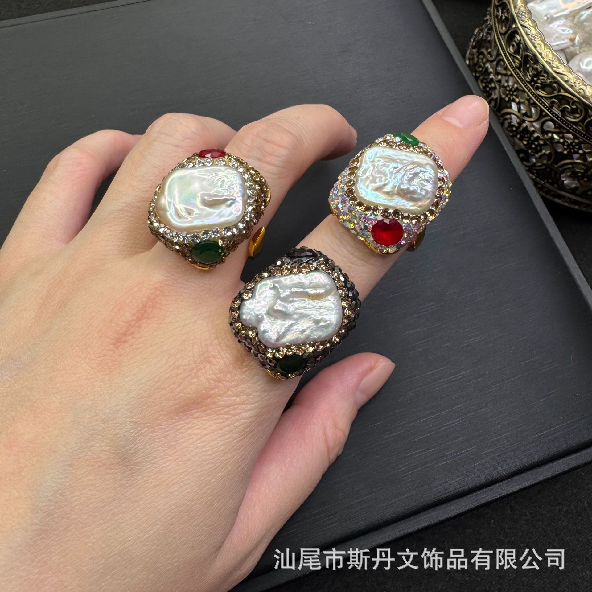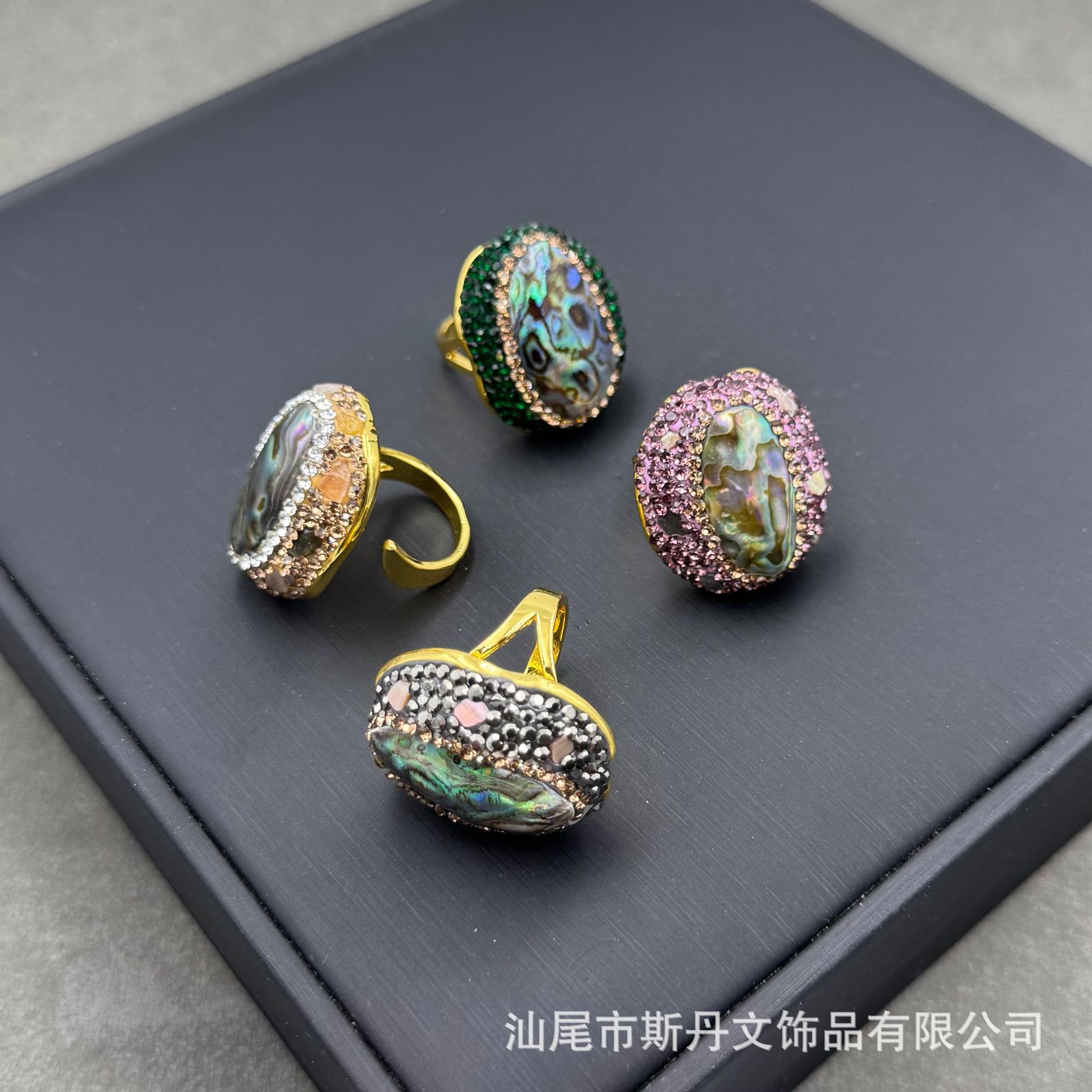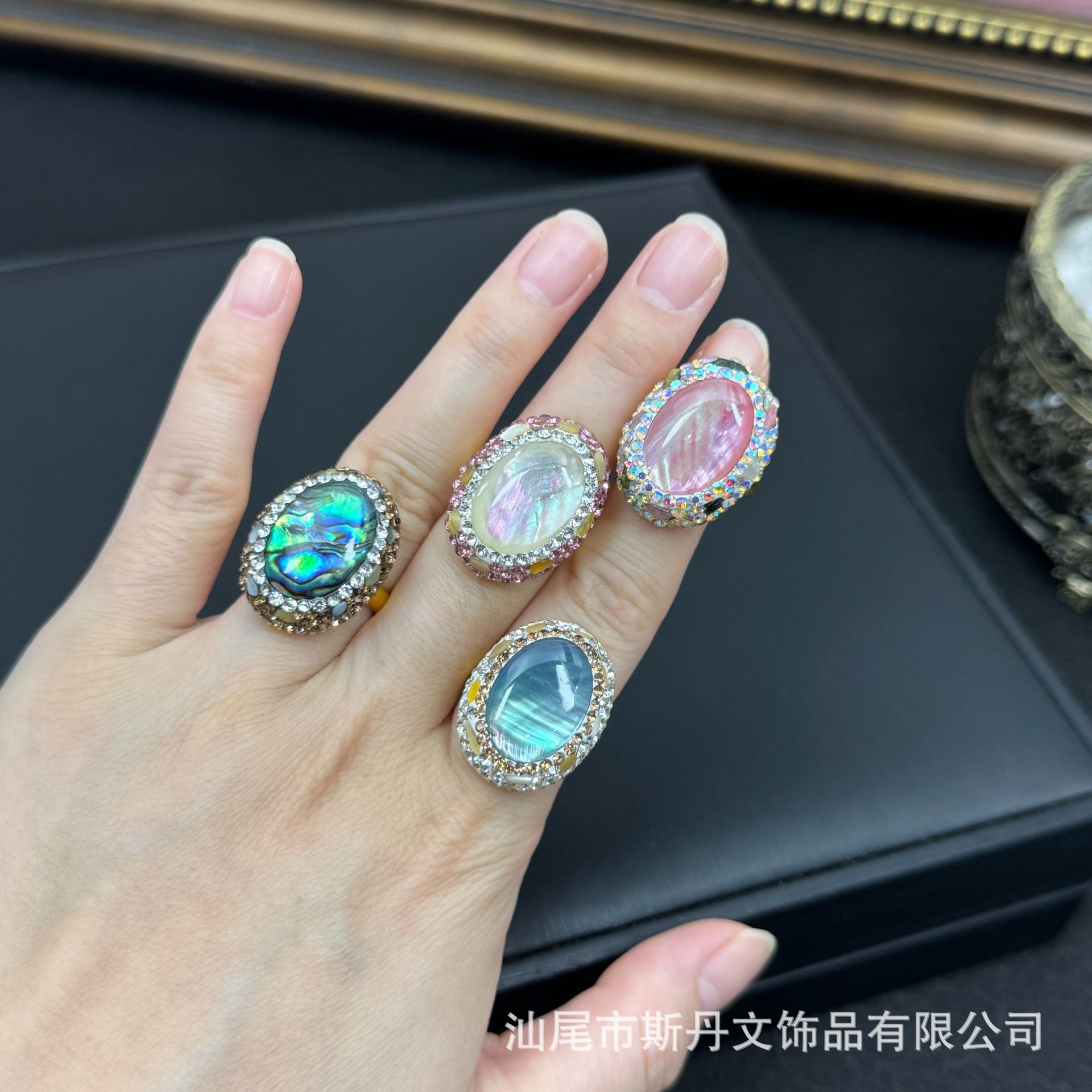 新しい天然アワビリング、ヨーロッパとアメリカのパーソナライズされたライトラグジュアリースタイルジュエリー、ファッショナブルなリング、手作りのダイヤモンドジュエリー、色保持