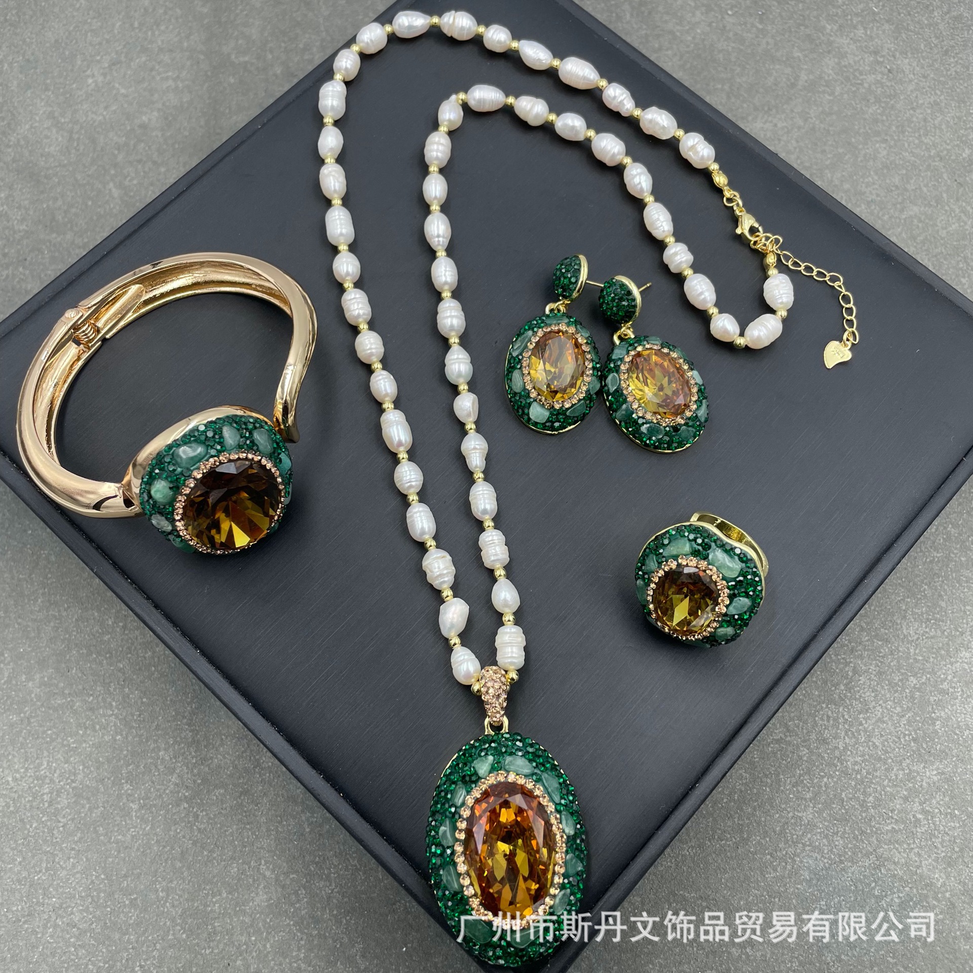 トルコスルタンストーン変色象嵌セットニッチ個性ヨーロッパとアメリカのライト高級ライトストーンジュエリーライブストリーミング卸売