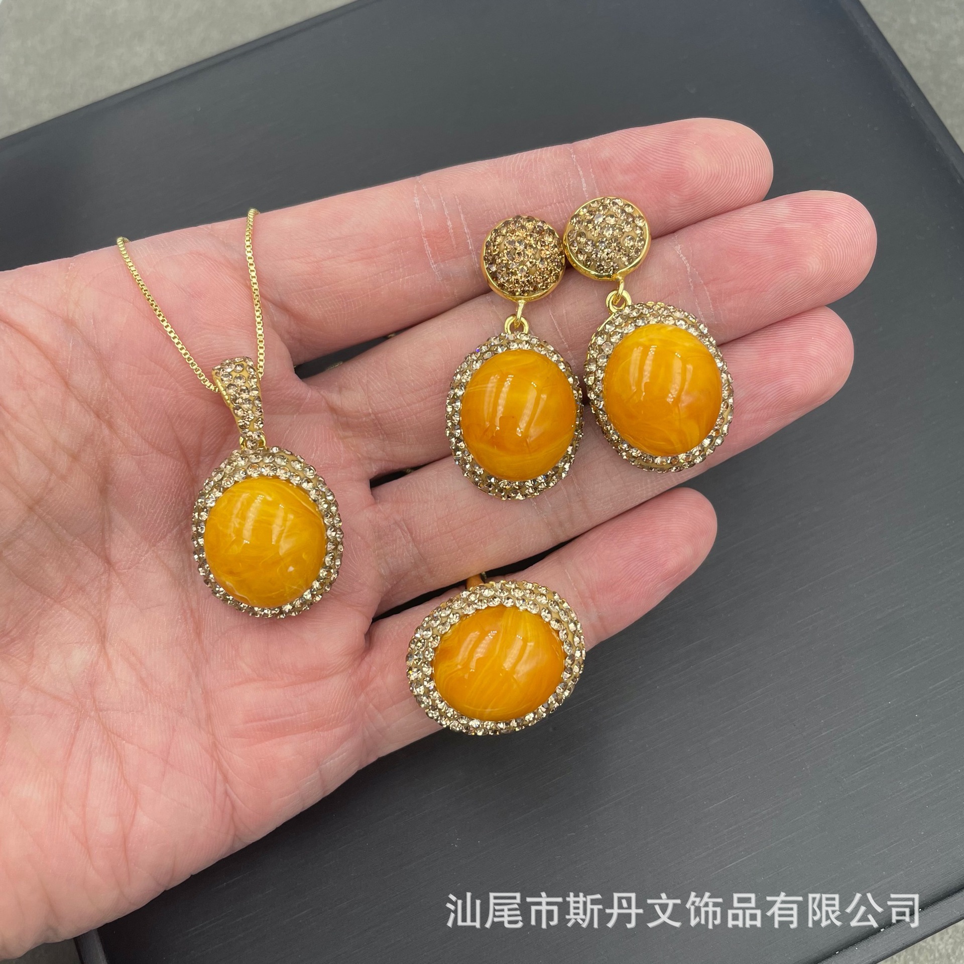 新しい第二世代蜜蝋象嵌シトリン 4 点セットパーソナライズされた中古ハイエンドダイヤモンドジュエリークロスボーダー供給卸売