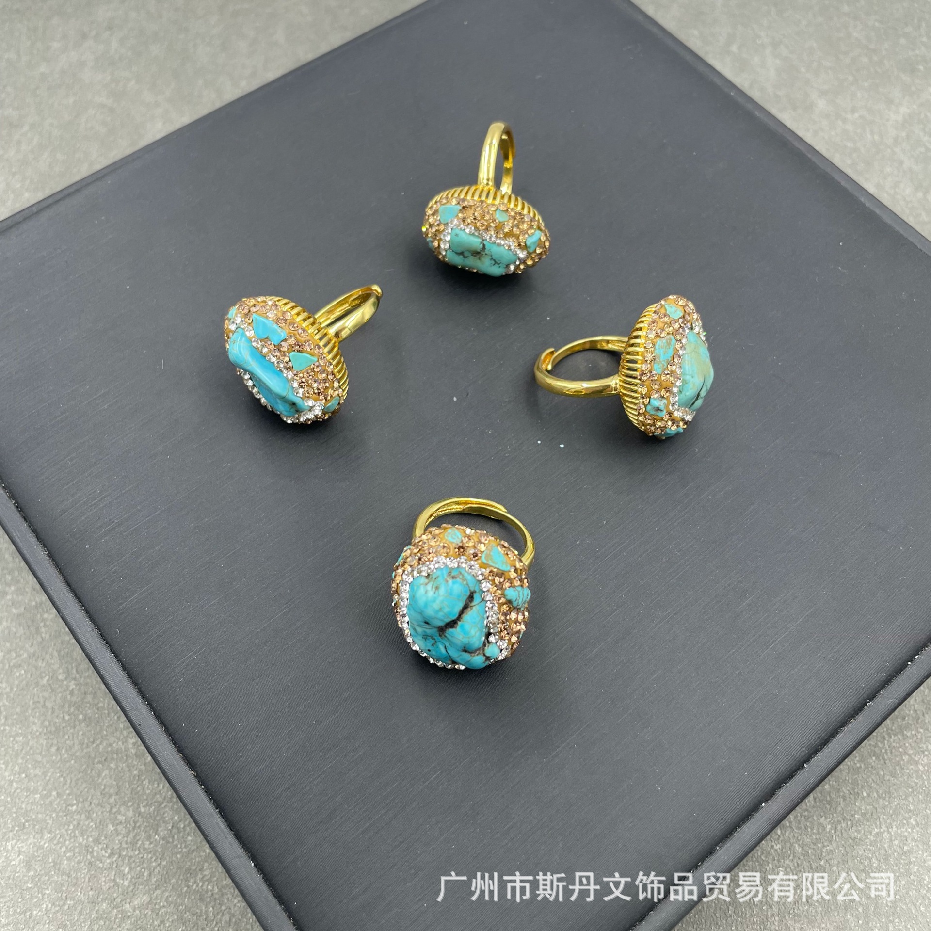 ライブブロードキャスト新しいブルーリン酸原石手象嵌リングパーソナライズされたニッチヴィンテージクロスボーダーサプライリング