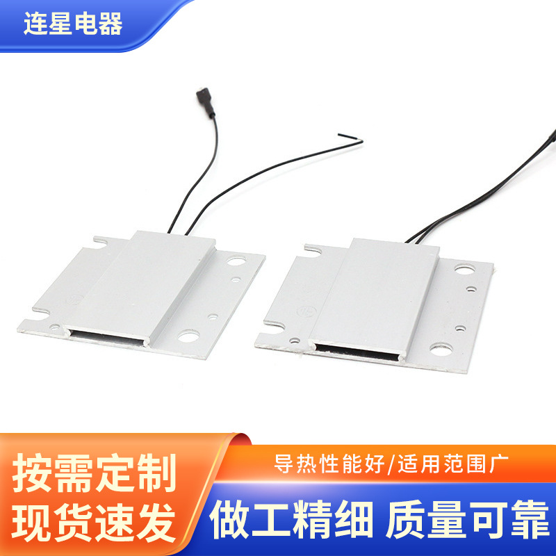 PTC加热片12V24V220v恒温73*63*7mm铝壳发热体片带孔凸台绝缘型