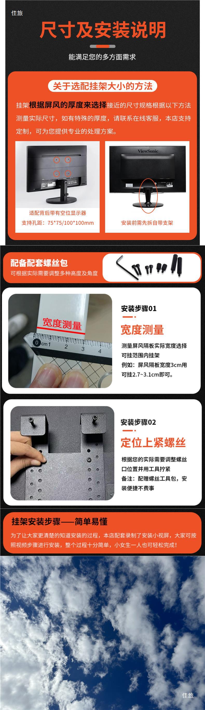 免打孔工位显示器支架办公位屏风挂架显示屏隔板增高悬臂电脑底座