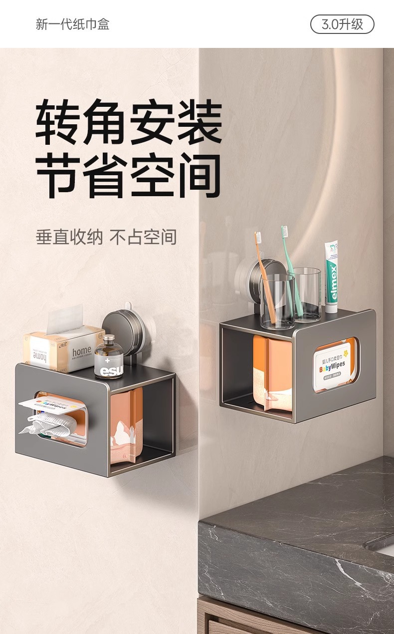 吸盤ティッシュボックストイレウェットトイレットペーパー収納ラックトイレ壁掛けトイレットペーパーボックスネイルフリー