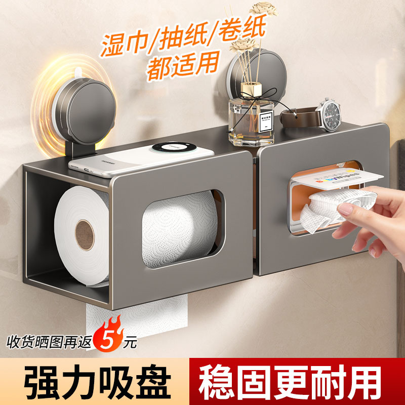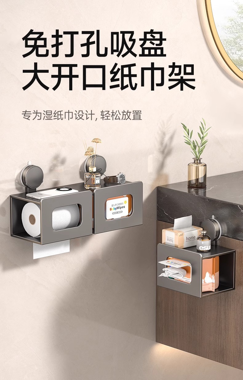 吸盘纸巾盒卫生间湿厕纸置物架厕所壁挂式厕纸盒卫生纸抽纸收纳盒