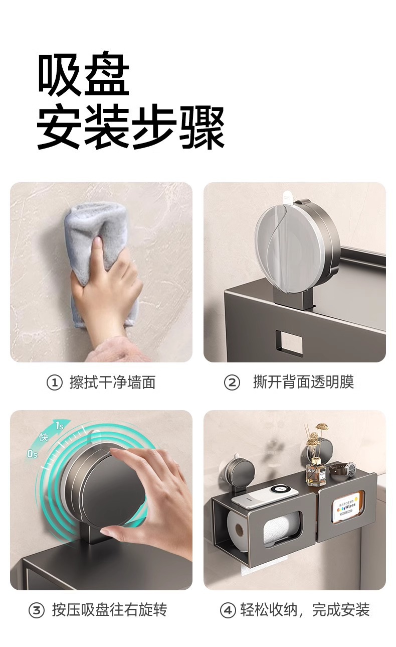 トイレロール紙吸紙収納棚トイレ多機能壁掛けティッシュ棚宇宙アルミ壁吸盤ティッシュケース