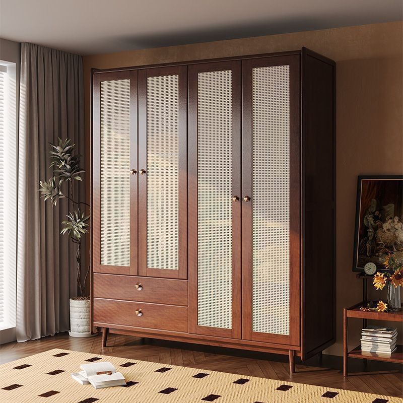 無垢材籐ワードローブ小さなアパート和風ワードローブカントリーアメリカン収納ホームベッドルームコンビネーション収納キャビネットB&B