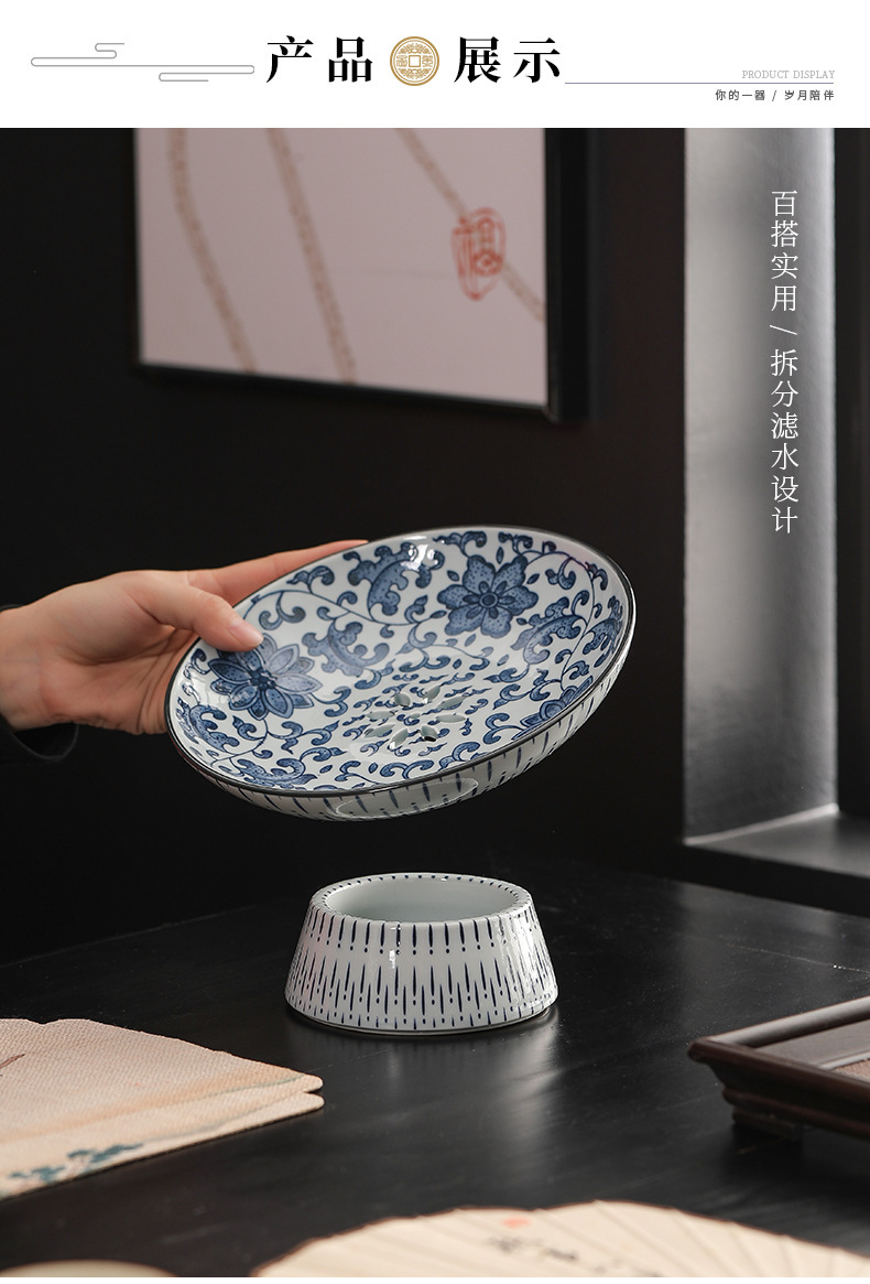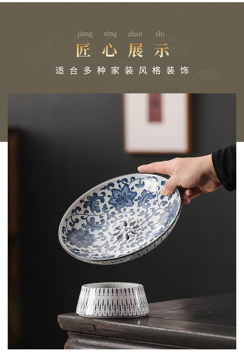 家庭用青花陶磁器水切り果物皿収納ドライフルーツ皿トレー客間茶何軽贅沢創意復古菓子皿