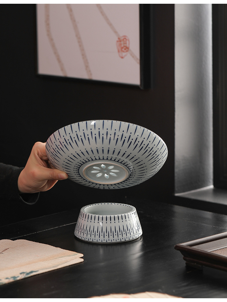 中国式家庭用陶磁器の高い足の水たまりの果物の皿禅意のお茶のお菓子の皿の茶道の部品の高い足のお茶の皿は仏の果物の皿に供えます。