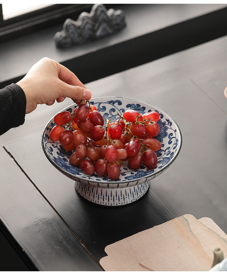 水切り陶磁器高足皿高足皿乾燥果物日本式果物皿中国式トレー菓子皿仏果皿
