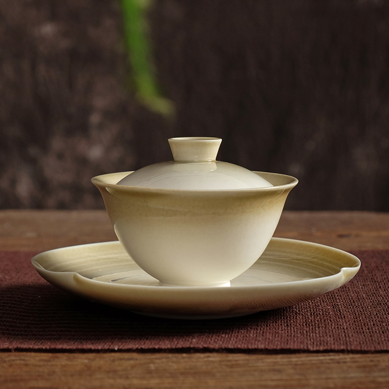 草木灰釉薬陶磁器三才蓋碗景徳鎮泡茶器単一家庭用工夫茶器大茶杯敬茶碗