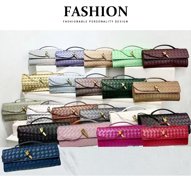 跨境风潮横款手提晚宴包中古风琴包高级感法棍包单肩斜挎包编织包
