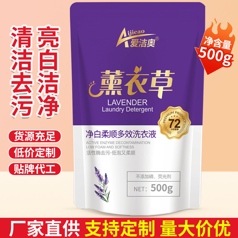 500gラベンダー洗濯液量ロット労働保険イベントプレゼント安い袋入り小包洗濯液卸売りメーカー