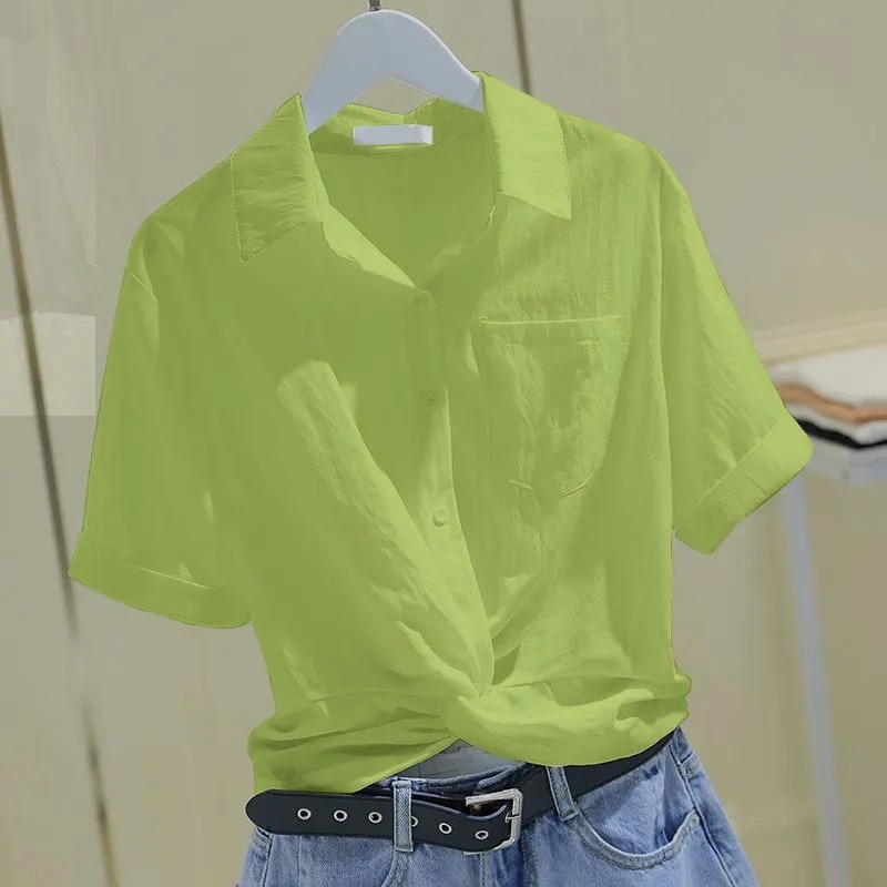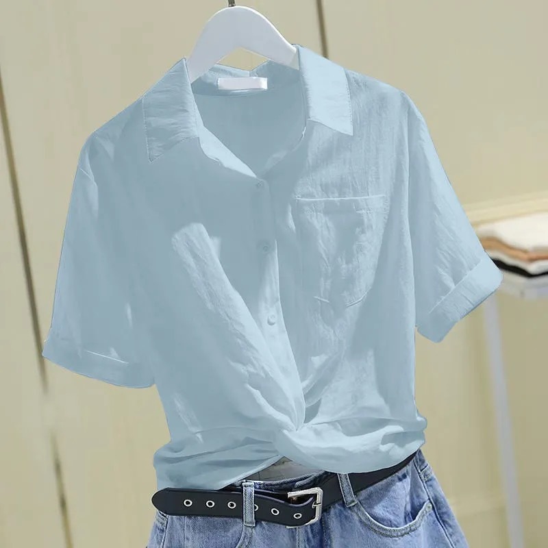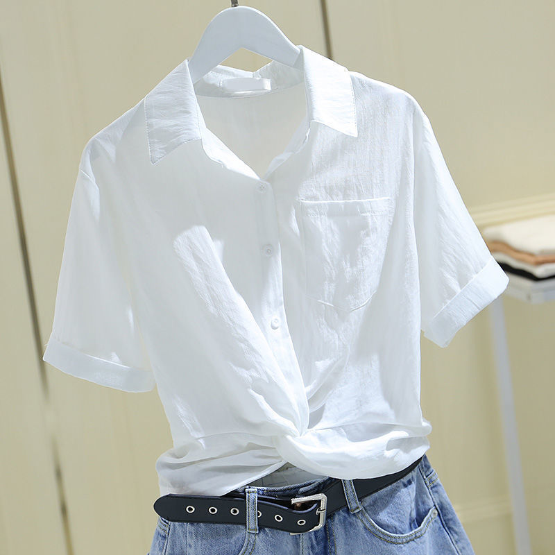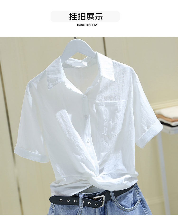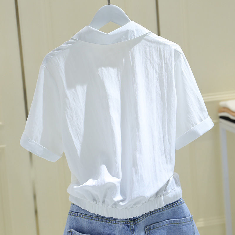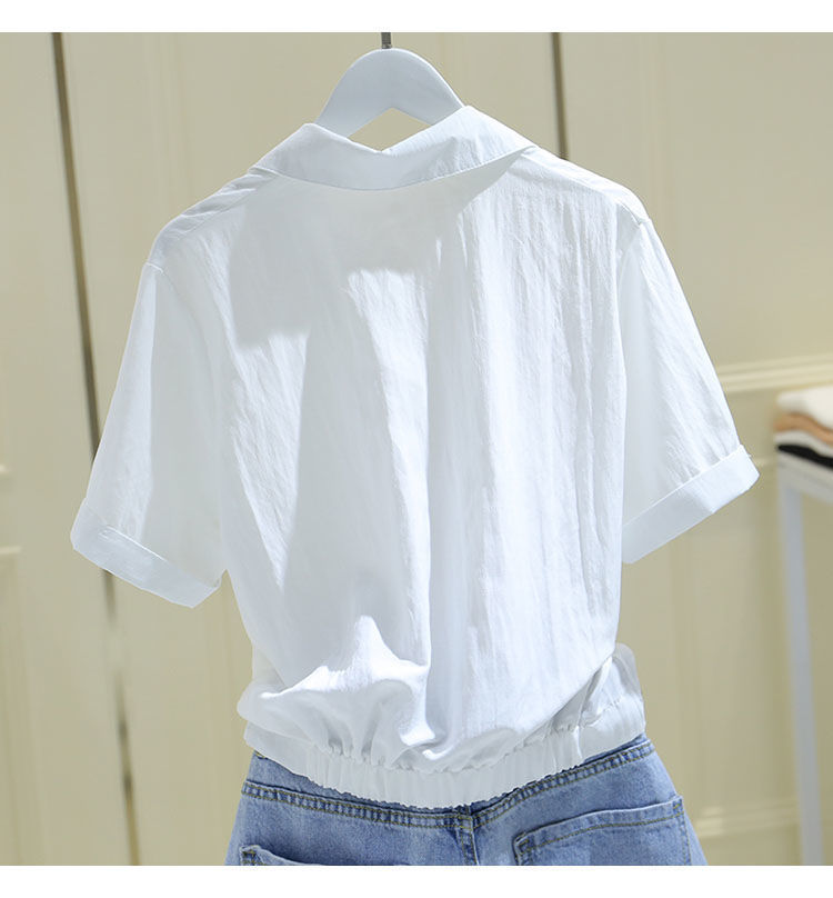 ショートシャツレディース半袖2025夏新作レディース韓国風ルーズプリーツショートホワイトシャツレディースアウター