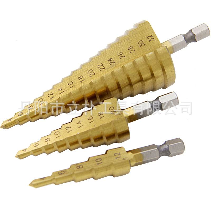 高速度鋼4-12/4-20/4-32mm六角柄直槽セットチタンメッキ階段ドリル3点セット宝塔ドリル