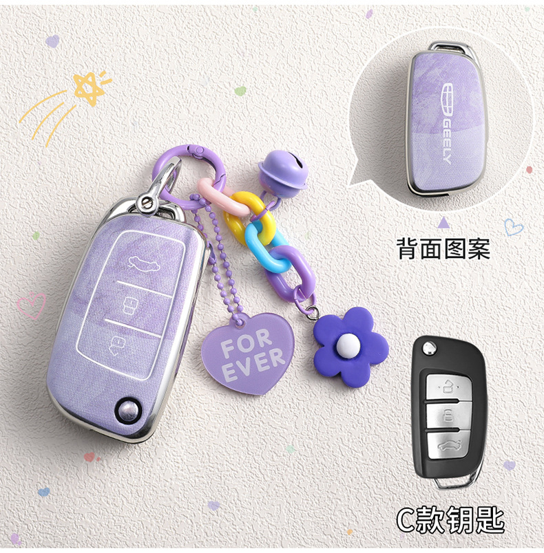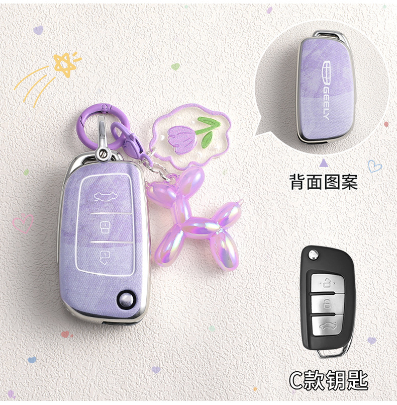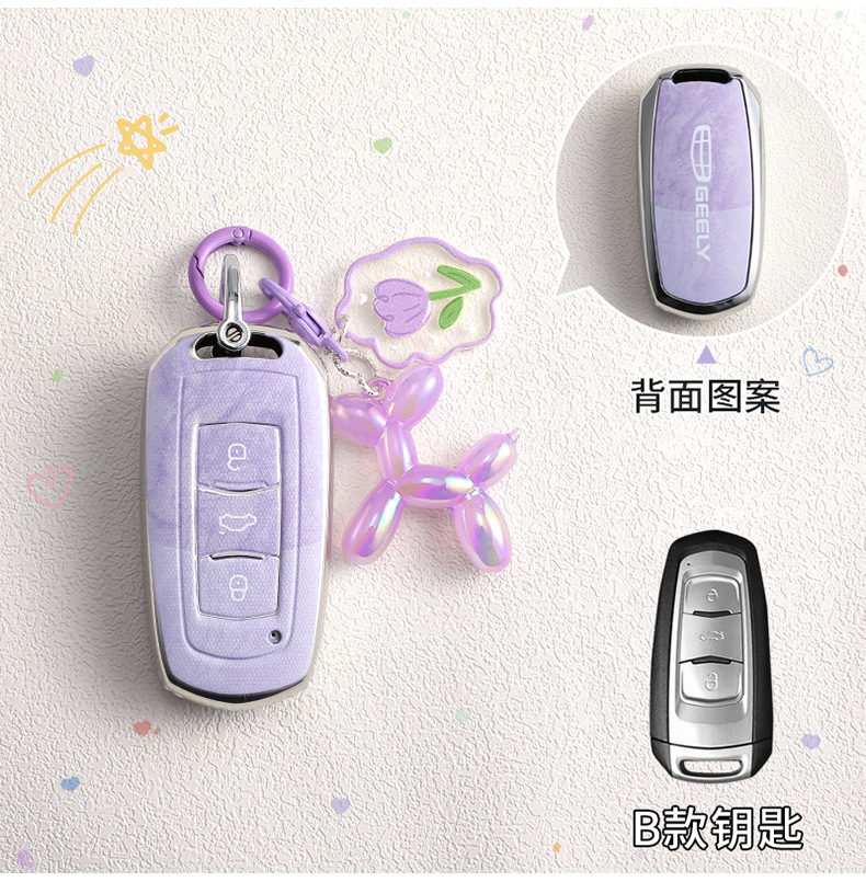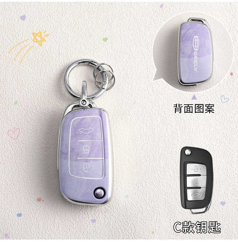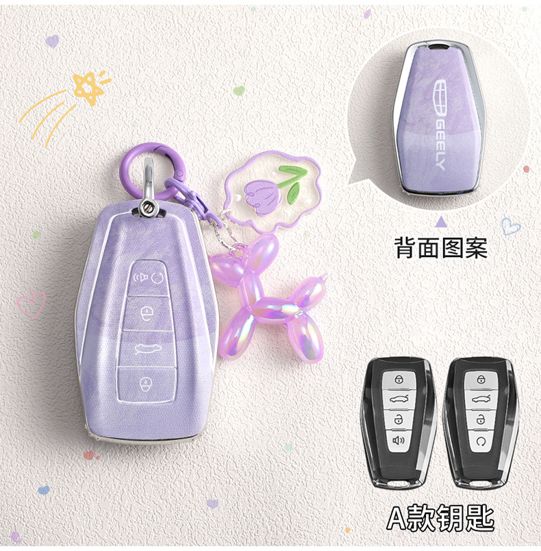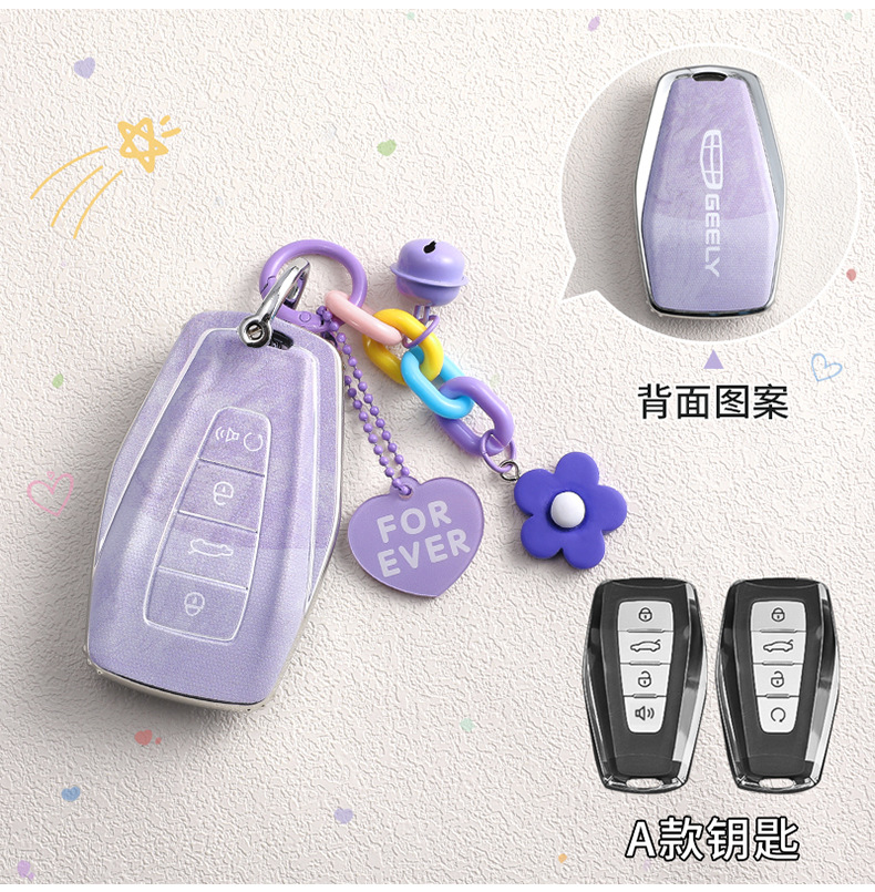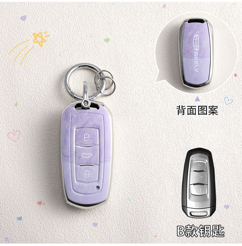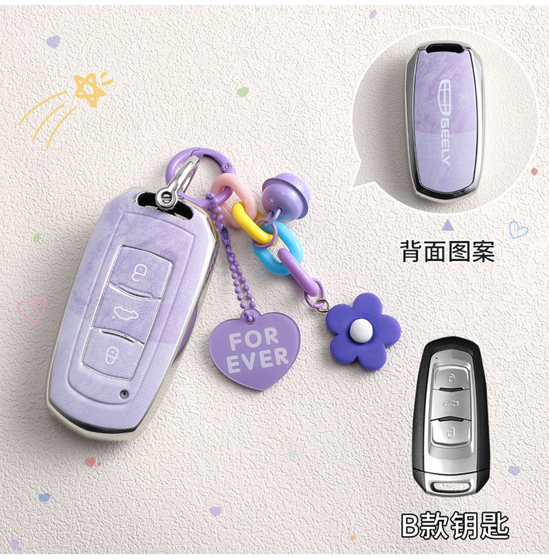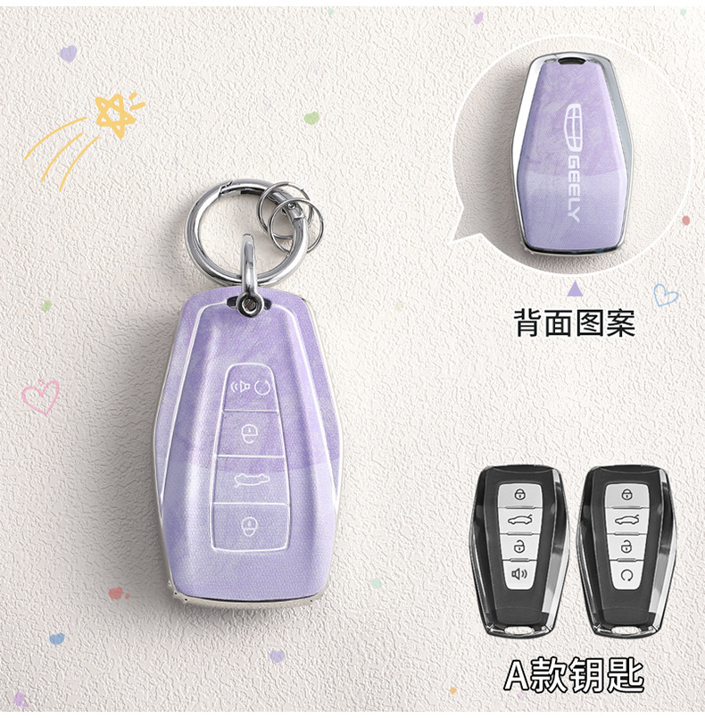 吉利Xingruiキーカバー、香りのよいワックス状パープルXingyue l Emgrand Boyue Binyue Binyue Vision/TPU保護ケースに適しています。