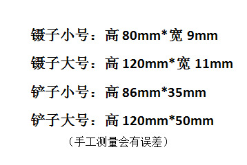 大型シャベル,小さなシャベル,三角スクレーパー 大サイズ,2.5cm×8.5cm角シャベル,ピンセット 大 [ハード],ピンセット 大 [ソフト],ピンセット 小【ソフト】,サイズ